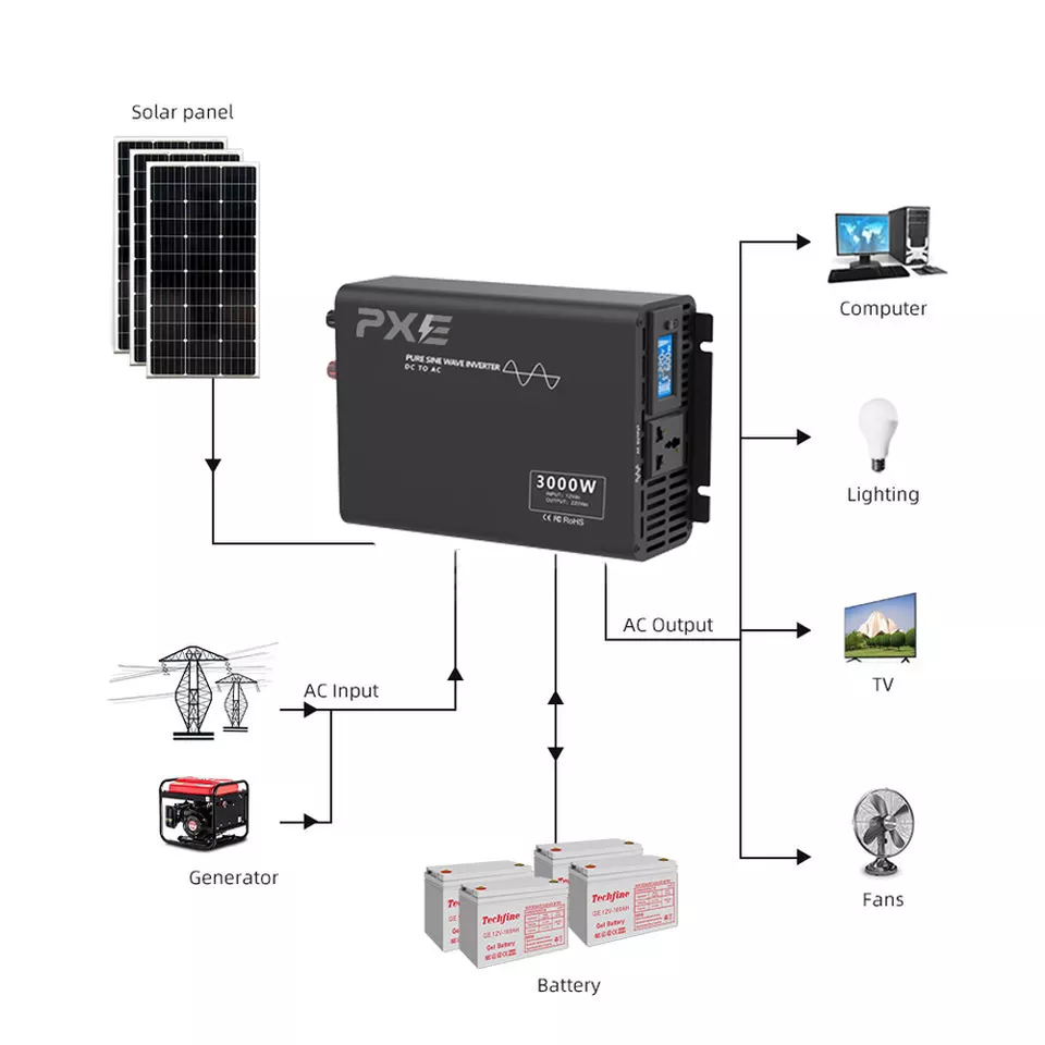PXE Manufacturer High Efficiency 4000W 3000W Solar Off Grid Pure Sine Wave Power Inverter / DC AC12v 220V 3Kw 4kw Solar Inverter
