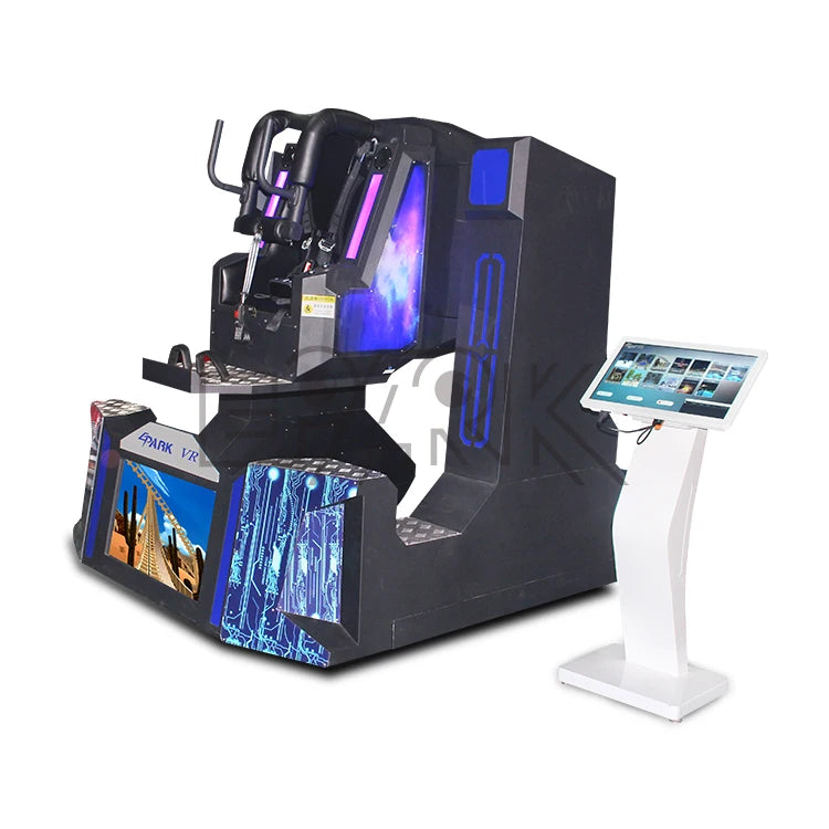 9D VR 720 Terminator is the latest product in 2020.It with high-resolution 9D VR movies to enjoy the virtual reality world. The immersive and thrilling equipment can multi-player to online racing and simulated flight, roller coaster also. The user-friendly design ladder and safety seat device increase the comfort of the experience. It is definitely a good way to attract customers!