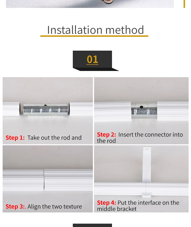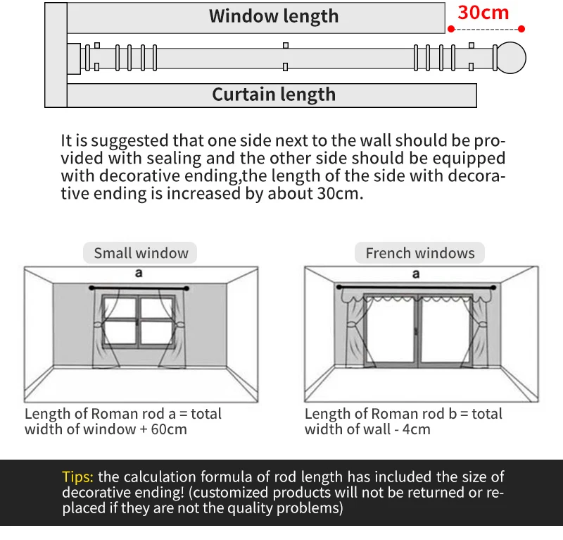 Material: 22mm diameter*0.6mm thickness Stainless steel rod;iron single bracket;plastic rings;aluminum curtain finials/caps.