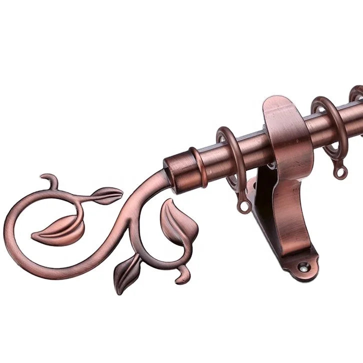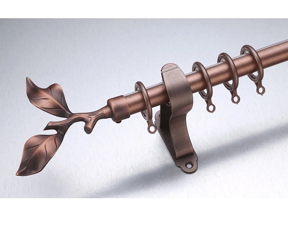 Ready ship window decorative simple leaf style metal bronze metal single curtain rods with curtain rod accessories