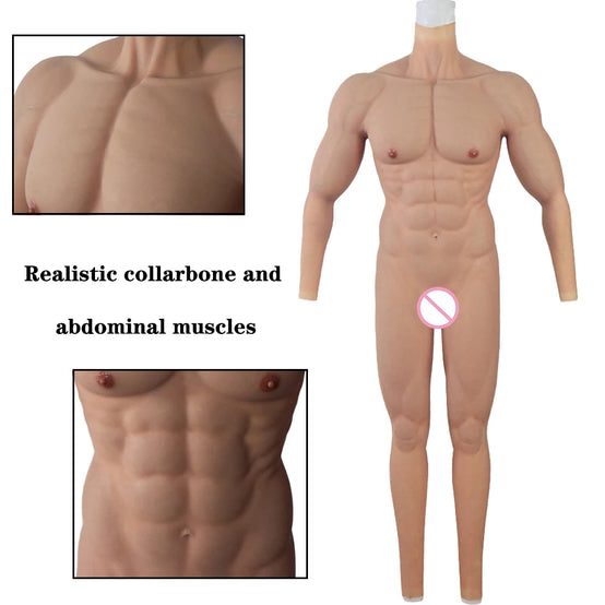 Realistic Silicone Fake Chest Muscle Body Suit with Arm Artificial Simulation Belly Muscles for Crossdresser Cosplay