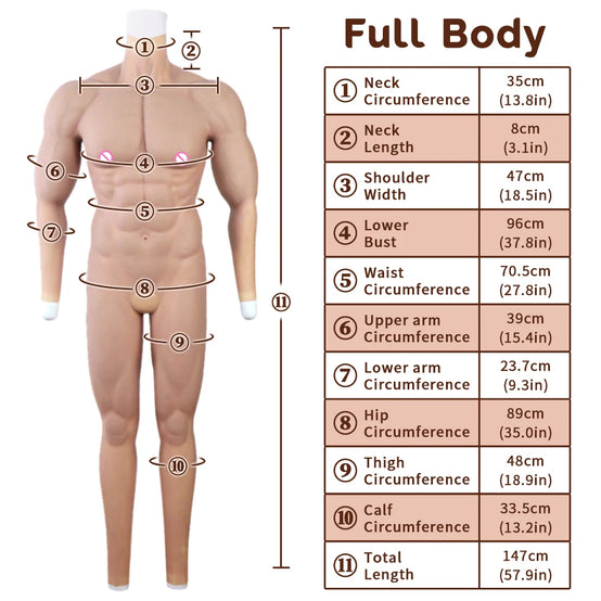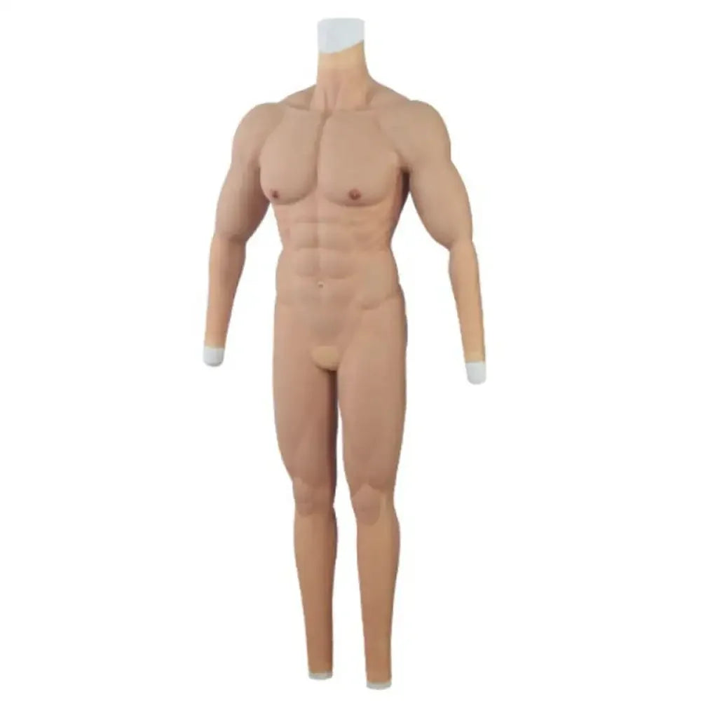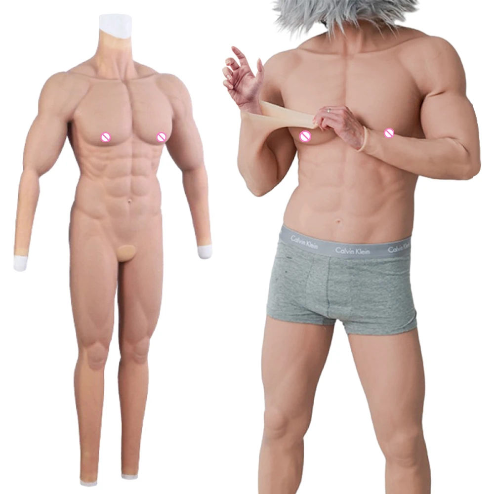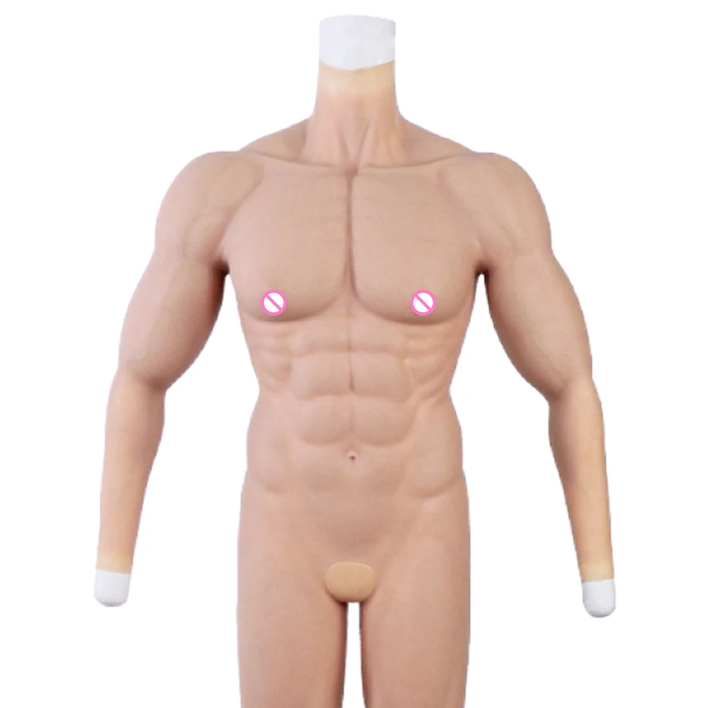 Realistic Silicone Fake Chest Muscle Body Suit with Arm Artificial Simulation Belly Muscles for Crossdresser Cosplay