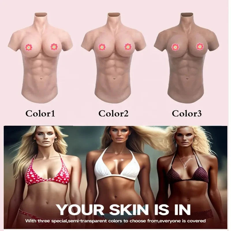 Realistic Silicone Muscle Suit Male Fake Chest with D cup boobs for Cosplay Costume Anime Masquerade