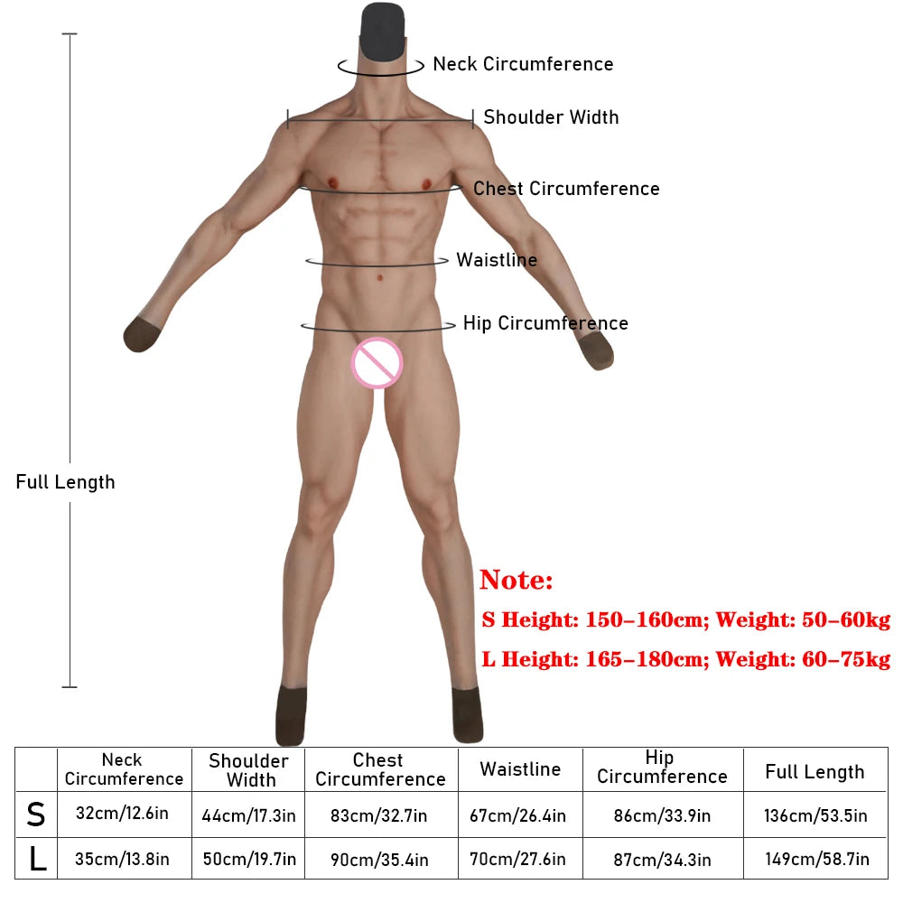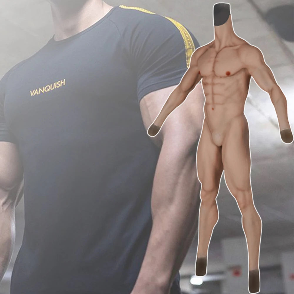 Realistic Whole Silicone Fake Chest Muscle Body Suit with Arm Artificial Simulation Belly Muscles for Crossdresser Cosplay