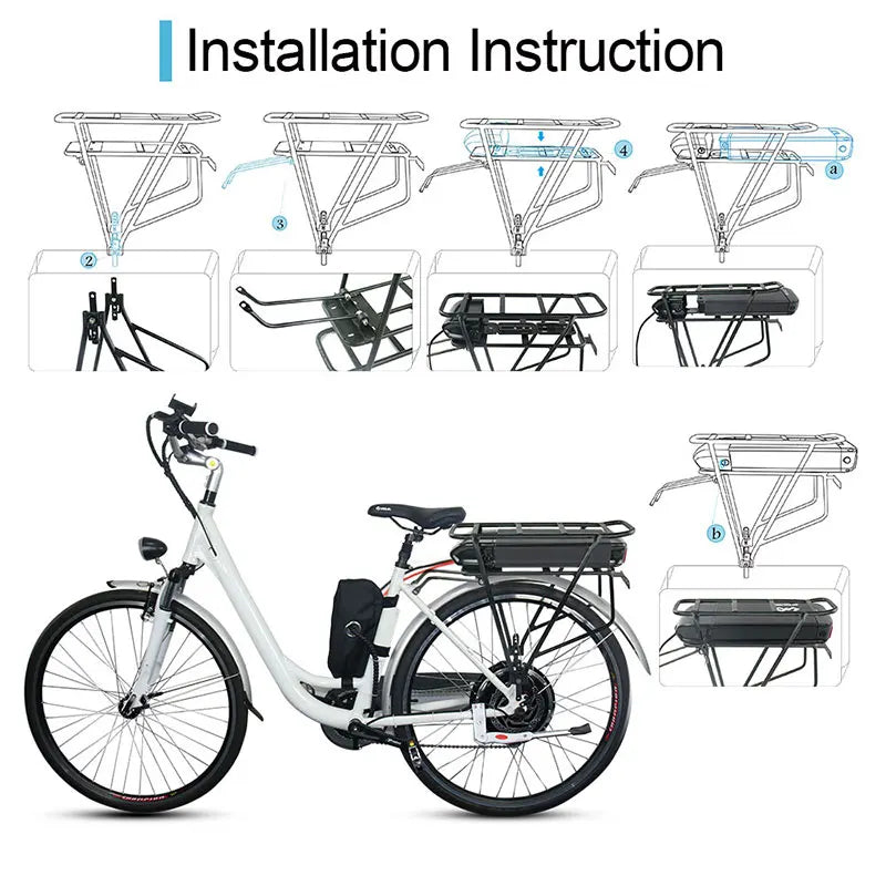 Rear rack battery cycle electric bicycle 36v 15ah lithium ion battery pack for ebike
