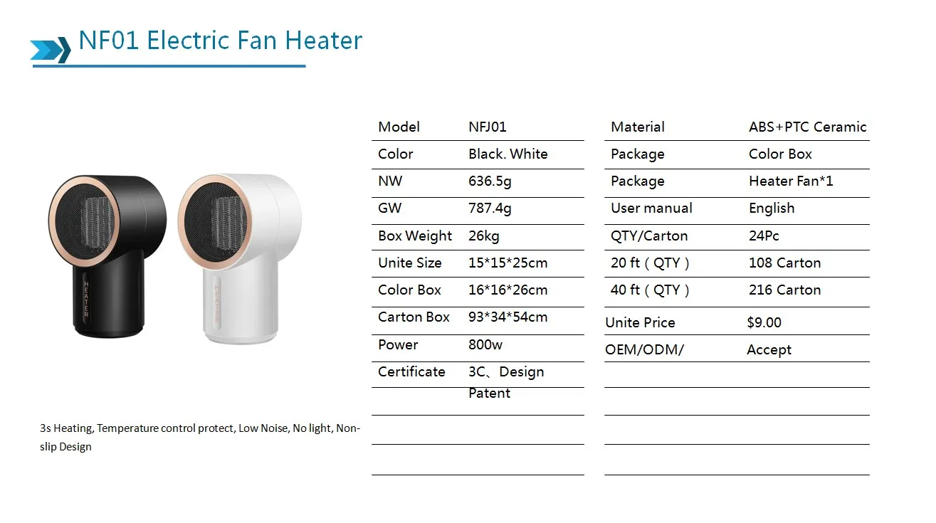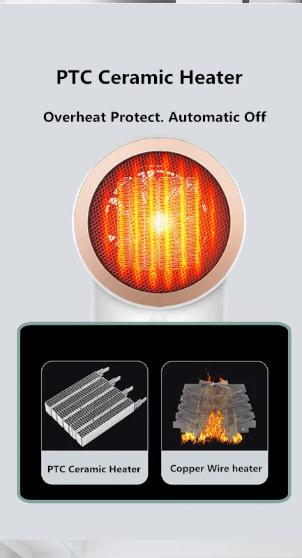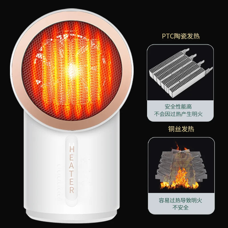 Rechargeable Electric Fan Heater Mini Small PTC Safety Desktop 800w Ceramic New Warm Room Home Office Smart Winter 1000W YL J001