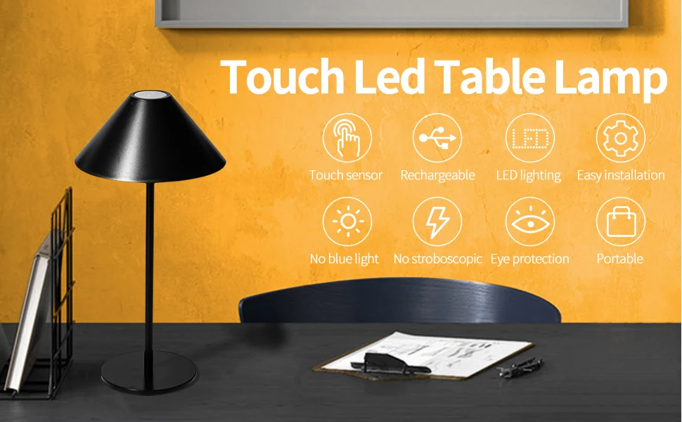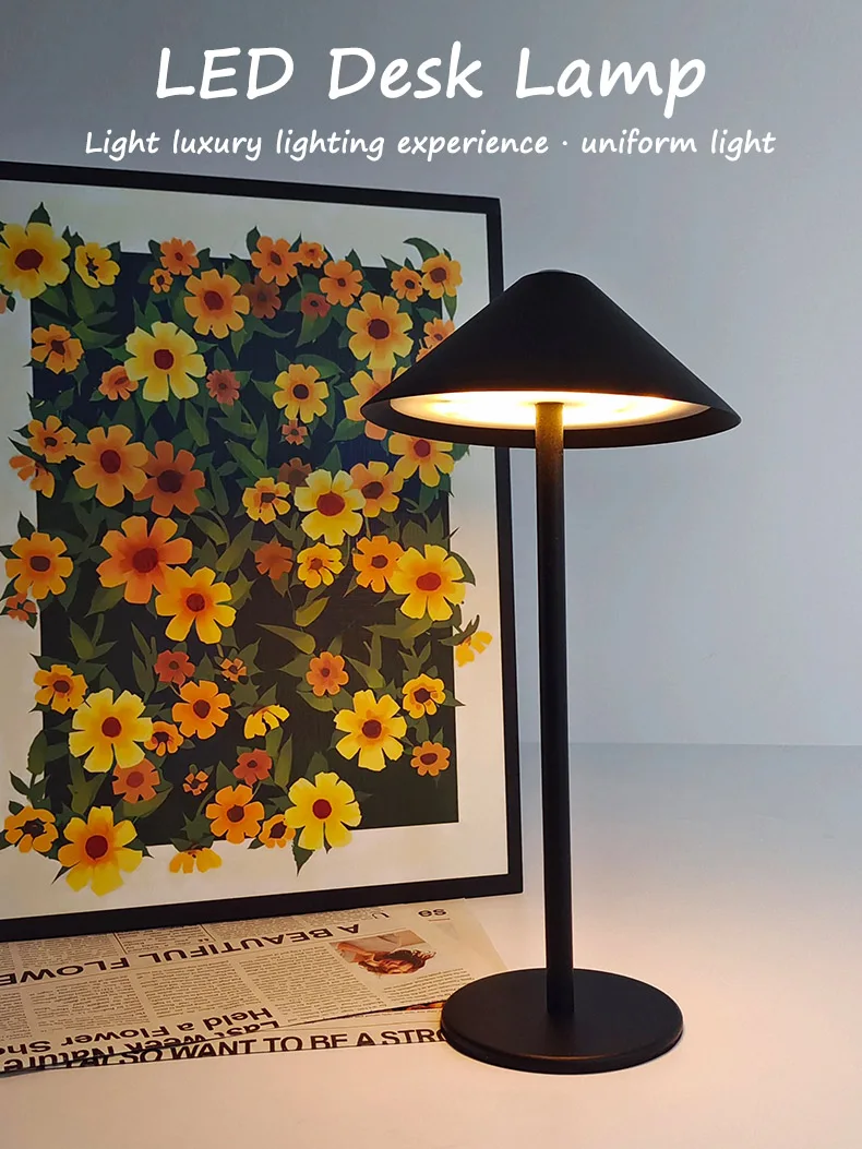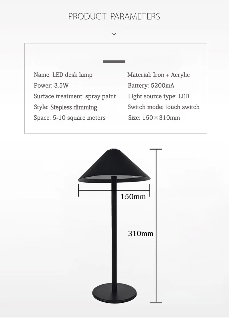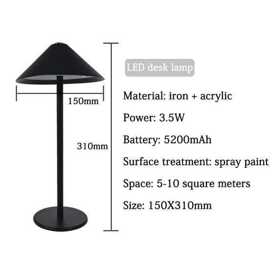 Rechargeable Touch Switch Battery Night Light Black Umbrella Shaped Cordless Bar Triangle Table Lamp