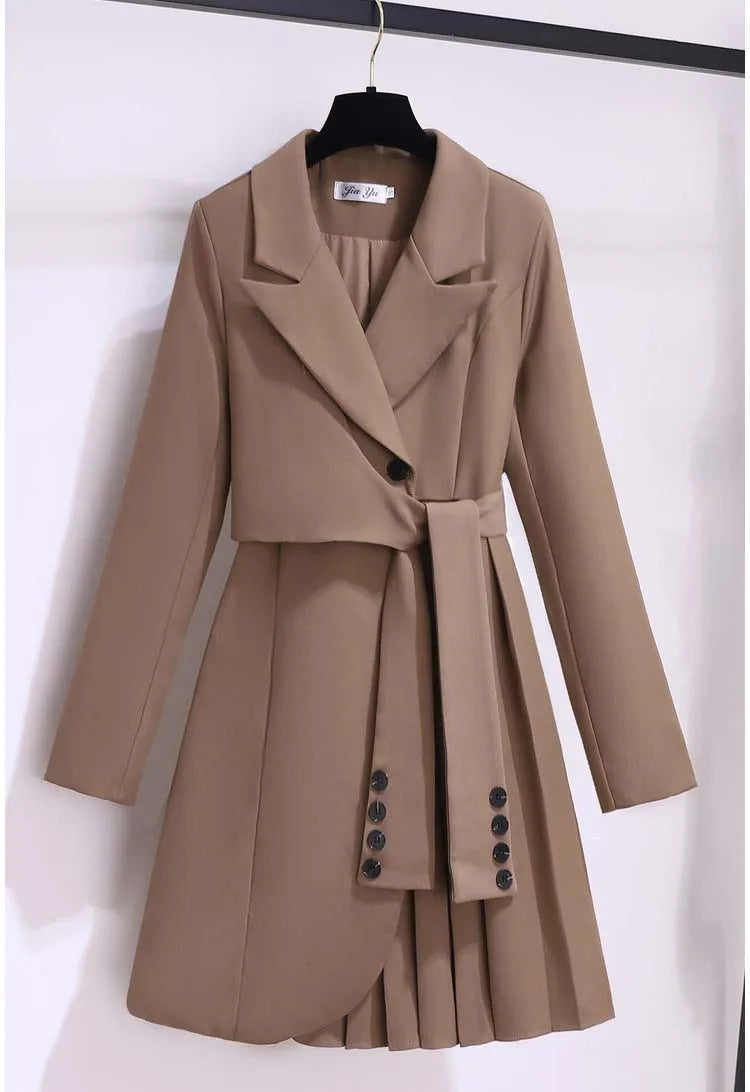 RedPeony Long Coat Black Blazers 2024 Spring New Fashion Women Clothing Suit Skirt Jacket Belt Waist Slim Suit Women Blazer