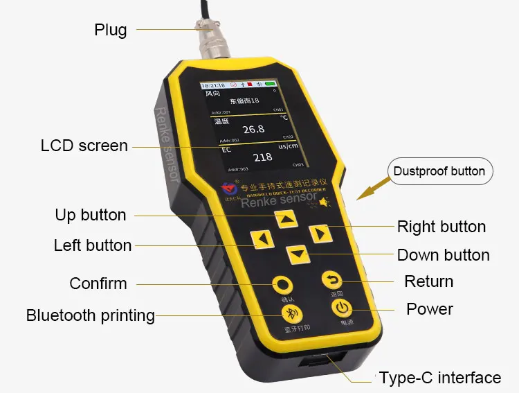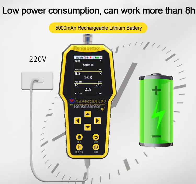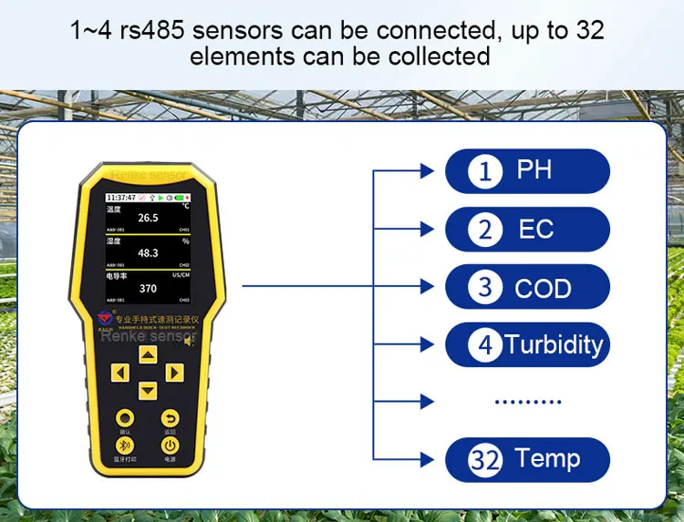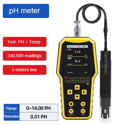 This handheld water quality data logger adopts a large LCD display that displays values in real-time. Up to 4 water quality sensors can be connected to measure various elements. Powered by a rechargeable lithium battery with long service life. It can store 340,000 pieces of data at one time. Widely used in water treatment, aquaculture, environmental monitoring and other industries. According to the needs, the pH, conductivity, ammonia nitrogen concentration, turbidity, dissolved oxygen, and COD can be selected to measure the water.