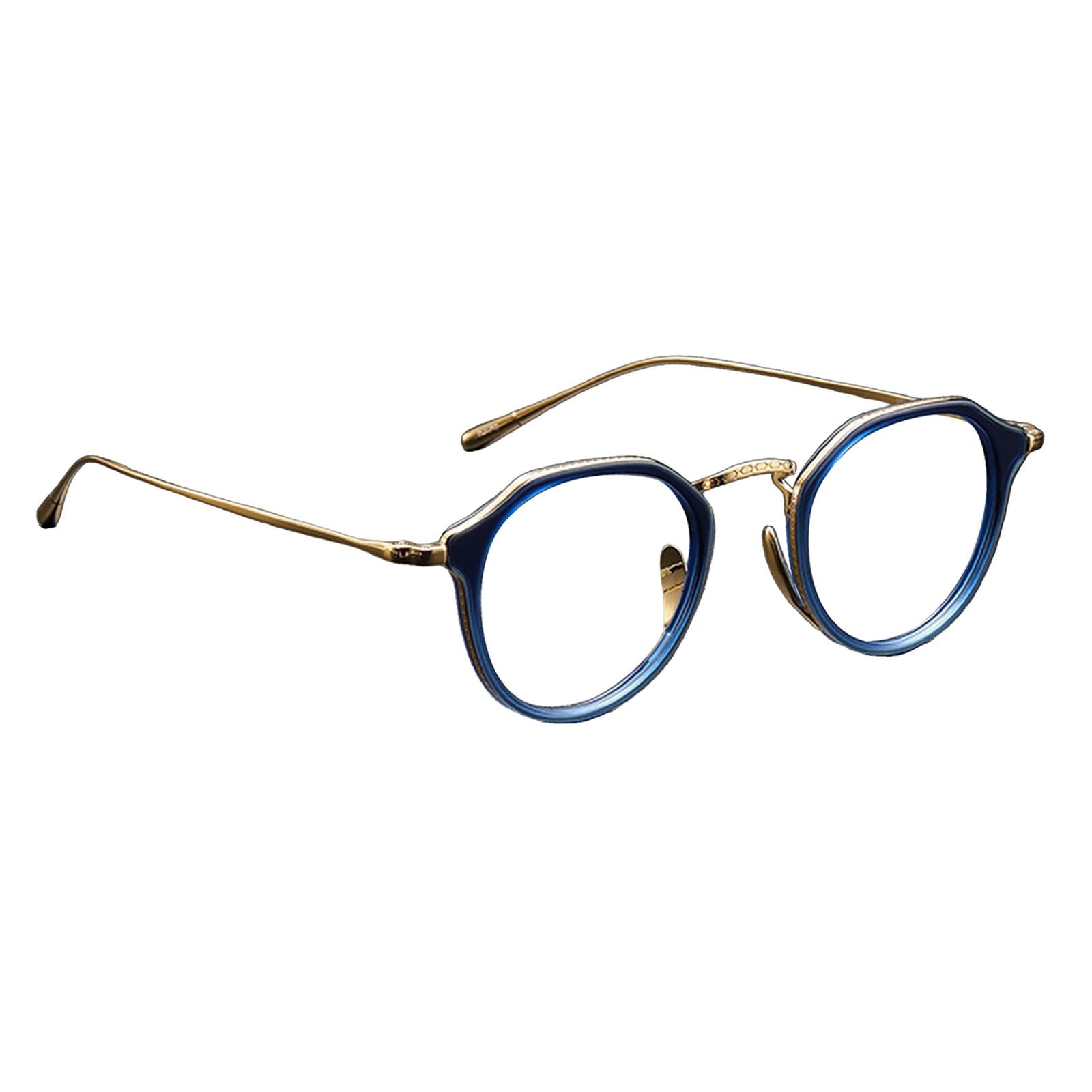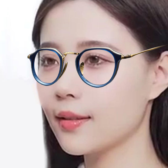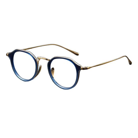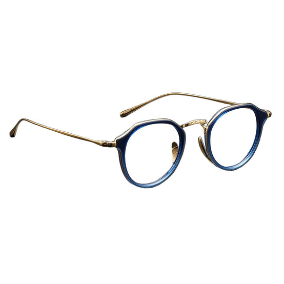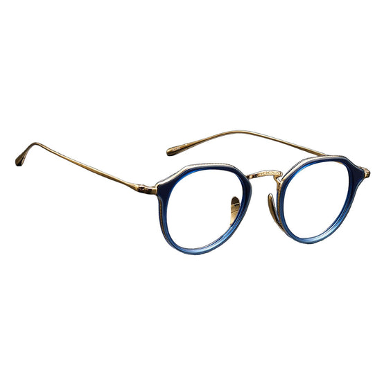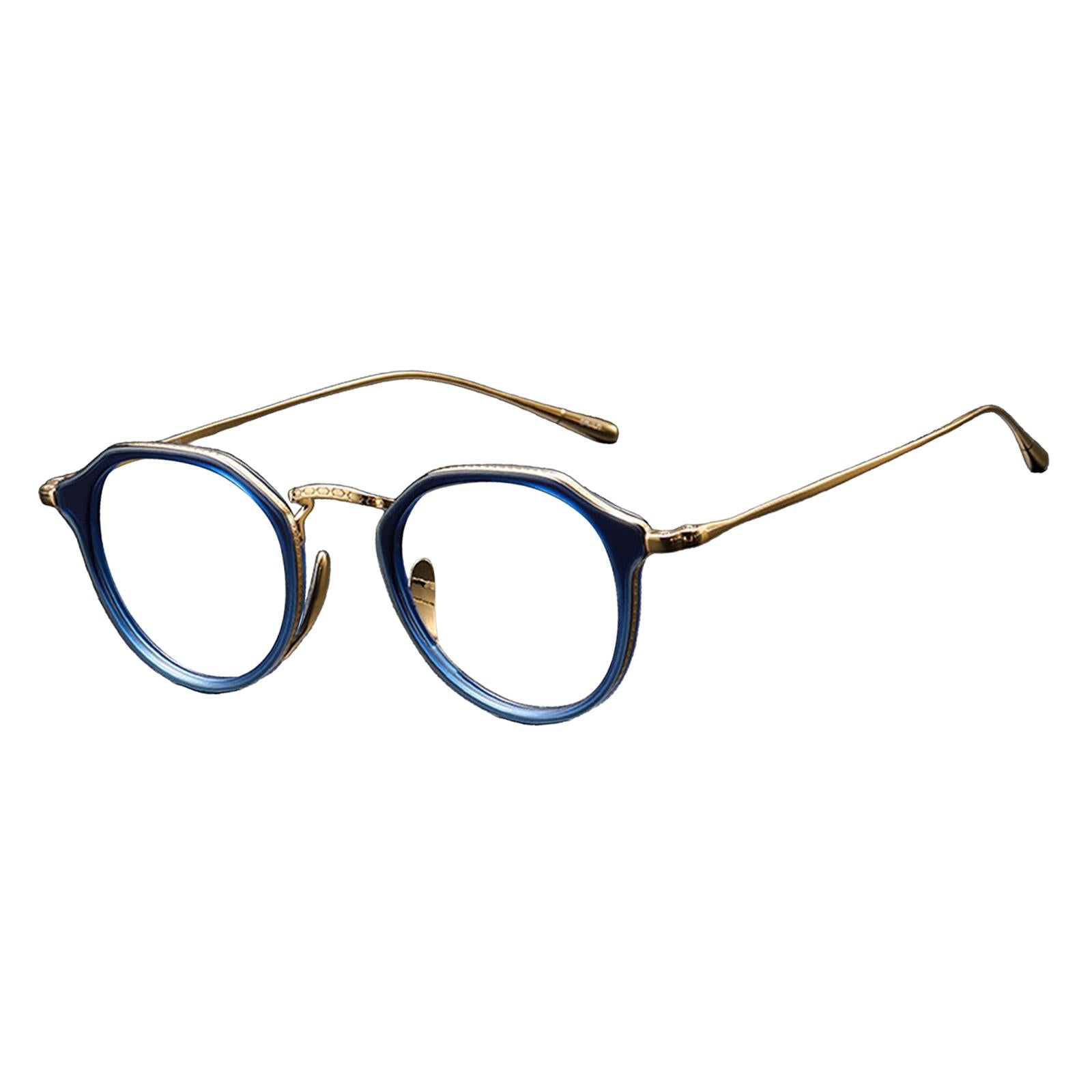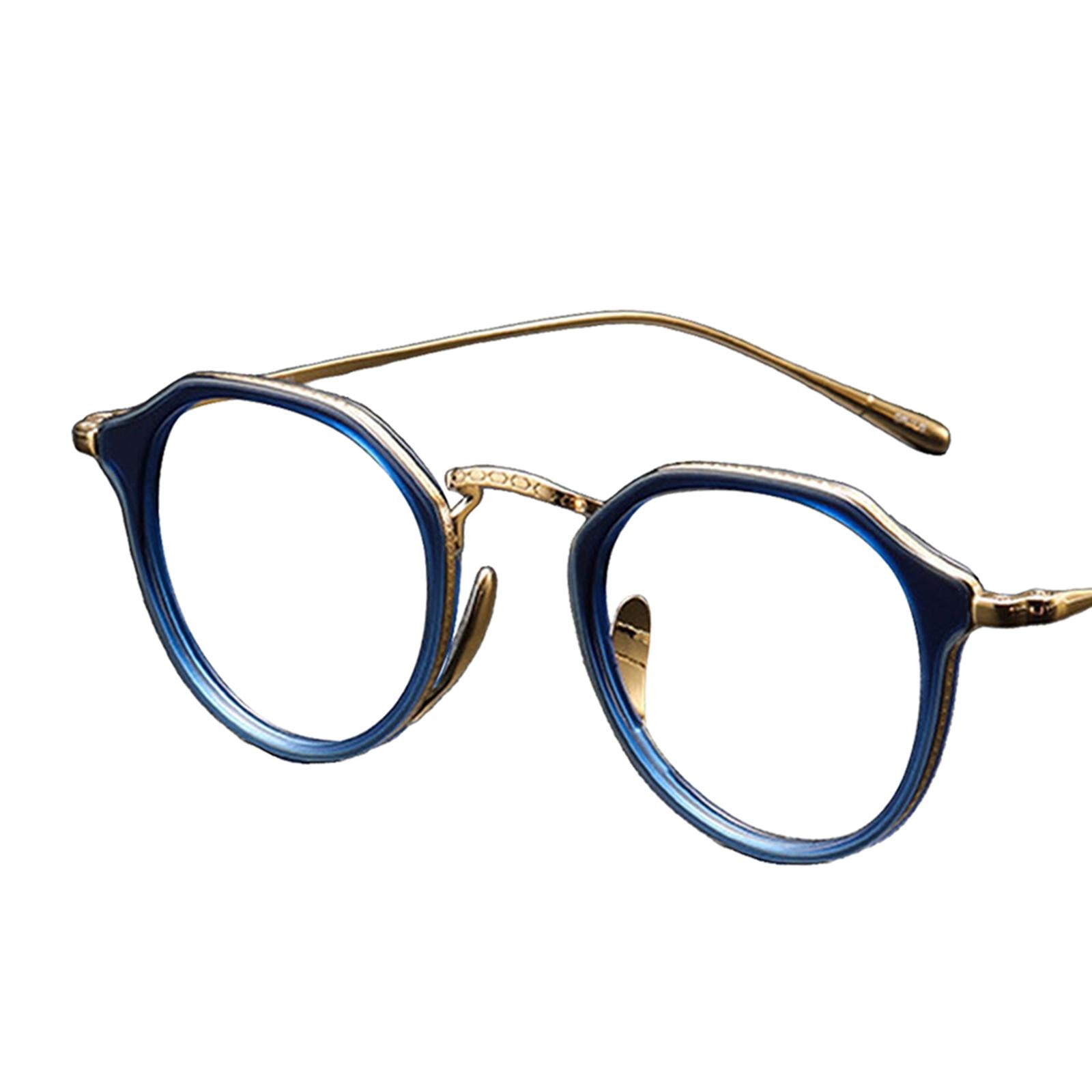 Retro Titanium Glasses Frames Oval for Men Women Comfortable to Wear Blue and Aureate