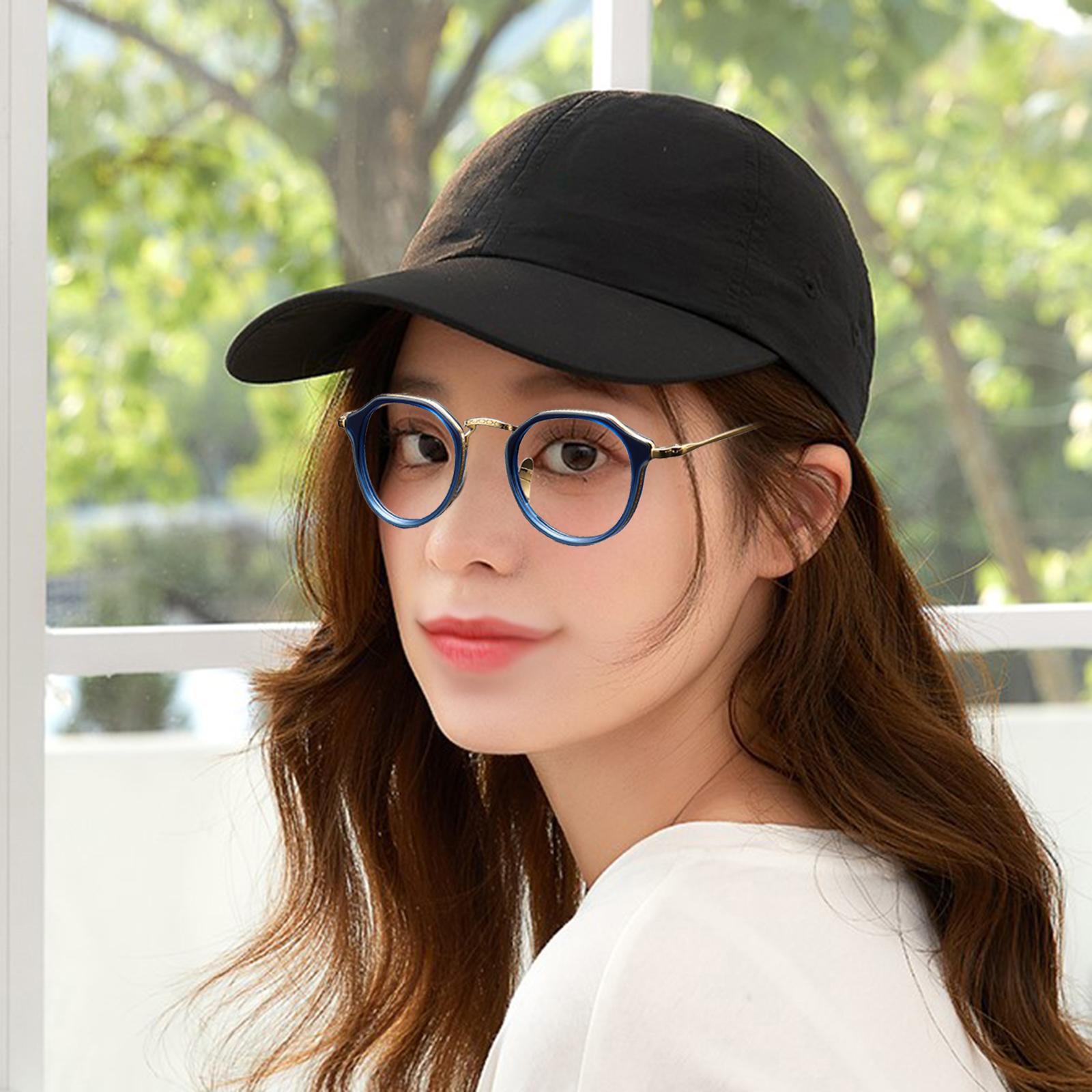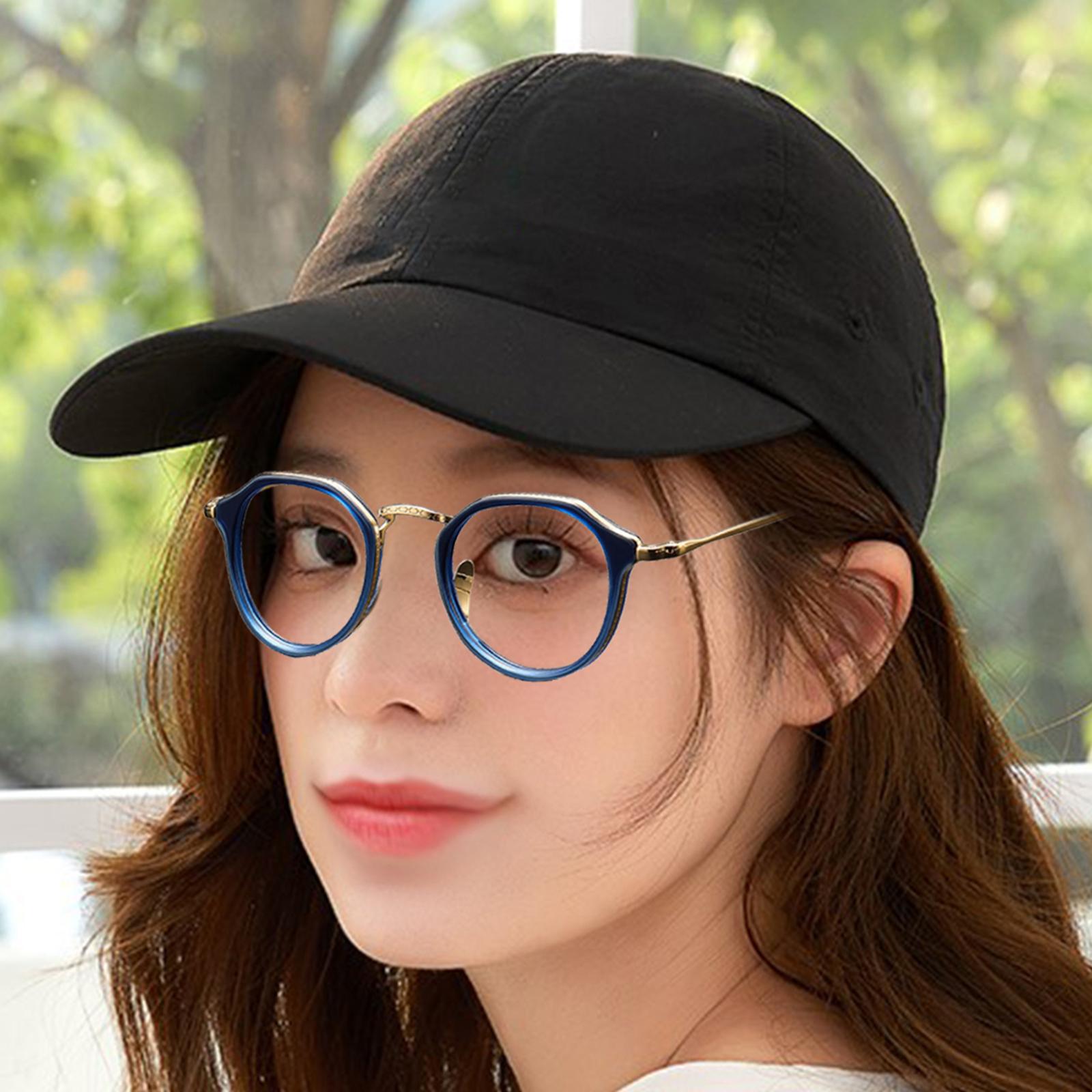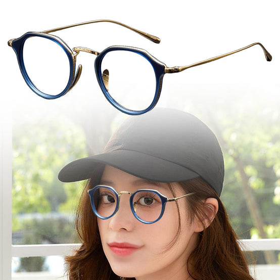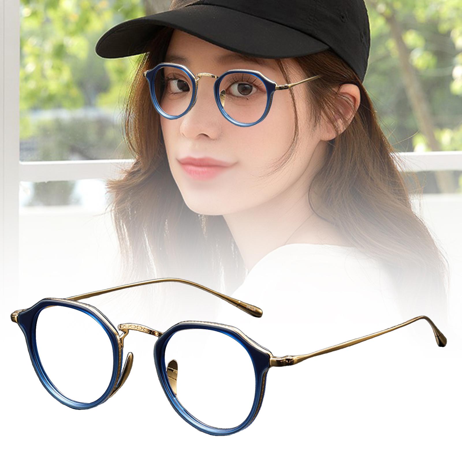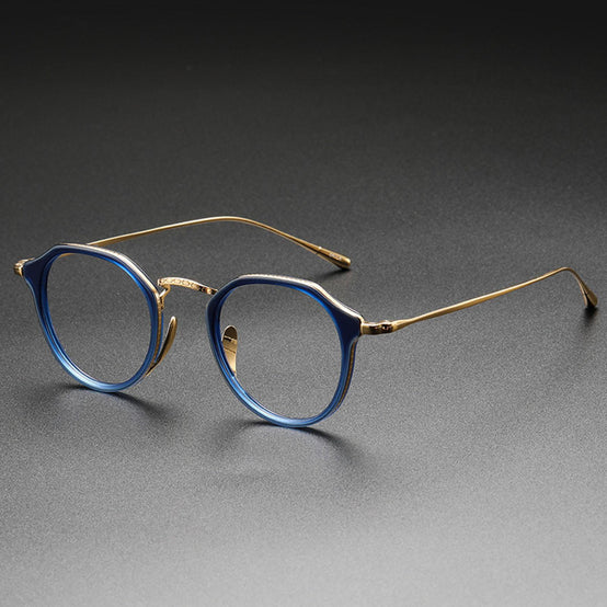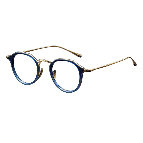 Retro Titanium Glasses Frames Oval for Men Women Comfortable to Wear Blue and Aureate