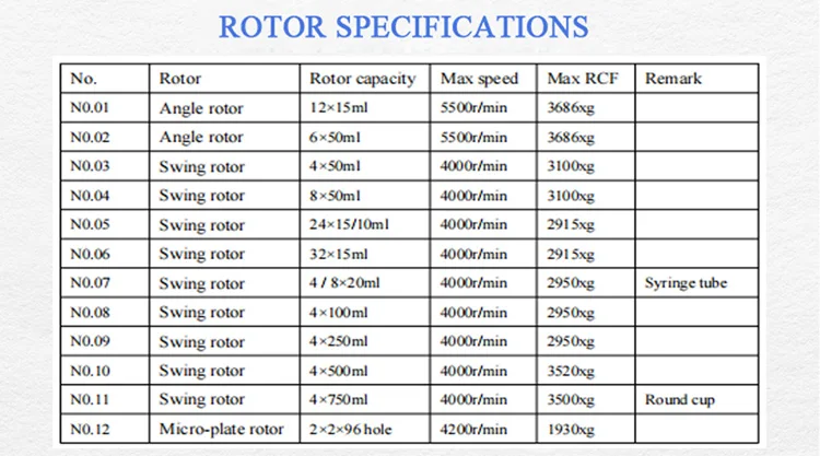 6. A variety of different rotors can be selected to meet the needs of different fields and different experiments (various adapters of 0.5-250ml can be customized)