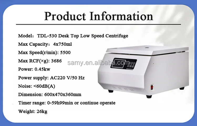 SAMY Hot Sale Lab Equipment High Quality Large Capacity 4*750ml TDL-530 Desk Top Low Speed Laboratory Centrifuge Machine Price