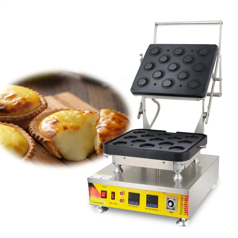Electric Egg Tart Machine: 1.Whole machine material is stainless steel 304 2.Unique design makes machine can heat evenly 3.Top and bottom plate can control temperature separately 4.Special oil sink can get the oil.