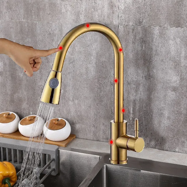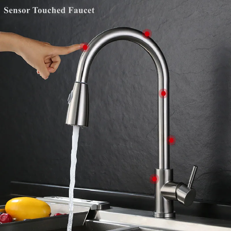 sensor automatic faucet touchless kitchen and bathroom mixer tap faucet 304 stainless steel touched tap for kitchen sink