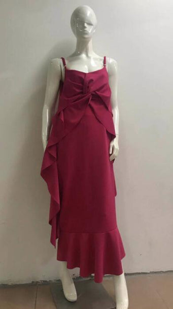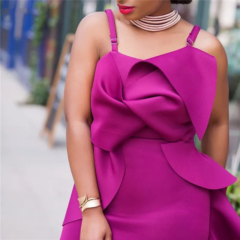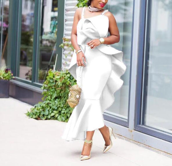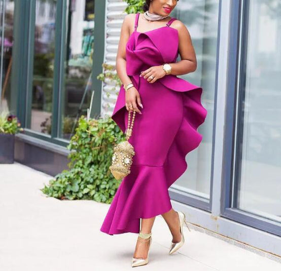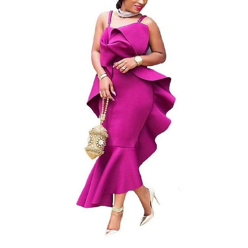 Sexy Elegant Bodycon Backless Irregular Ruffle Evening Women Dress