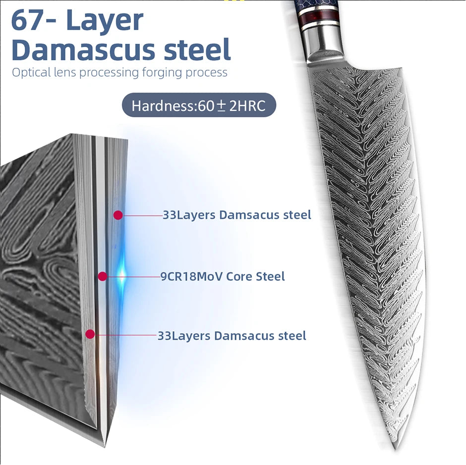 | Item | Damascus Steel VG10 Kitchen Knives Set | |||