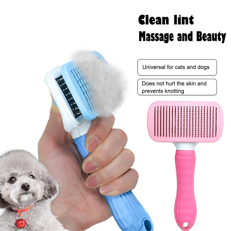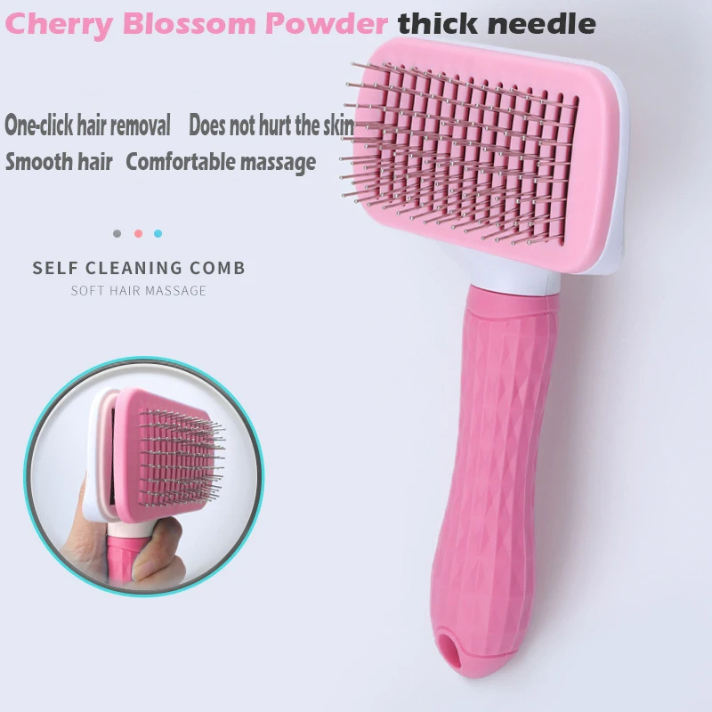 Shedding Groom One Key Dog Hair Self Cleaning Comb Special Pin Needle Massage Cleaner Pet Brush for Dog Cat Animal Fur Tools