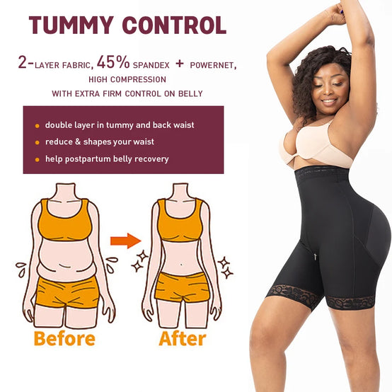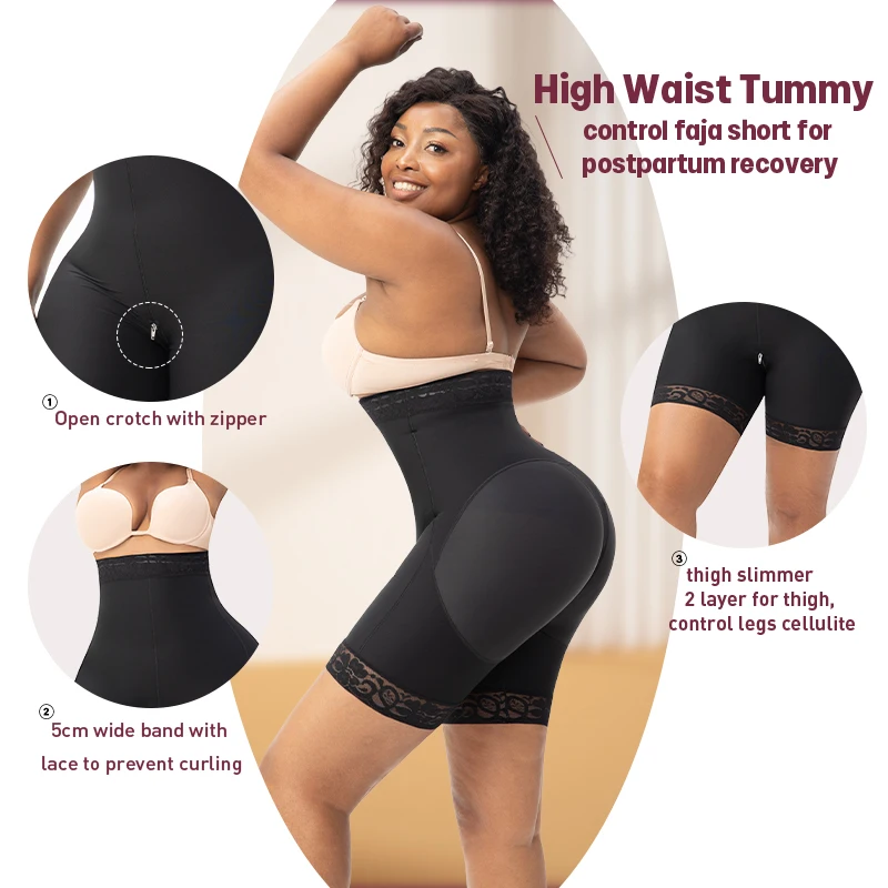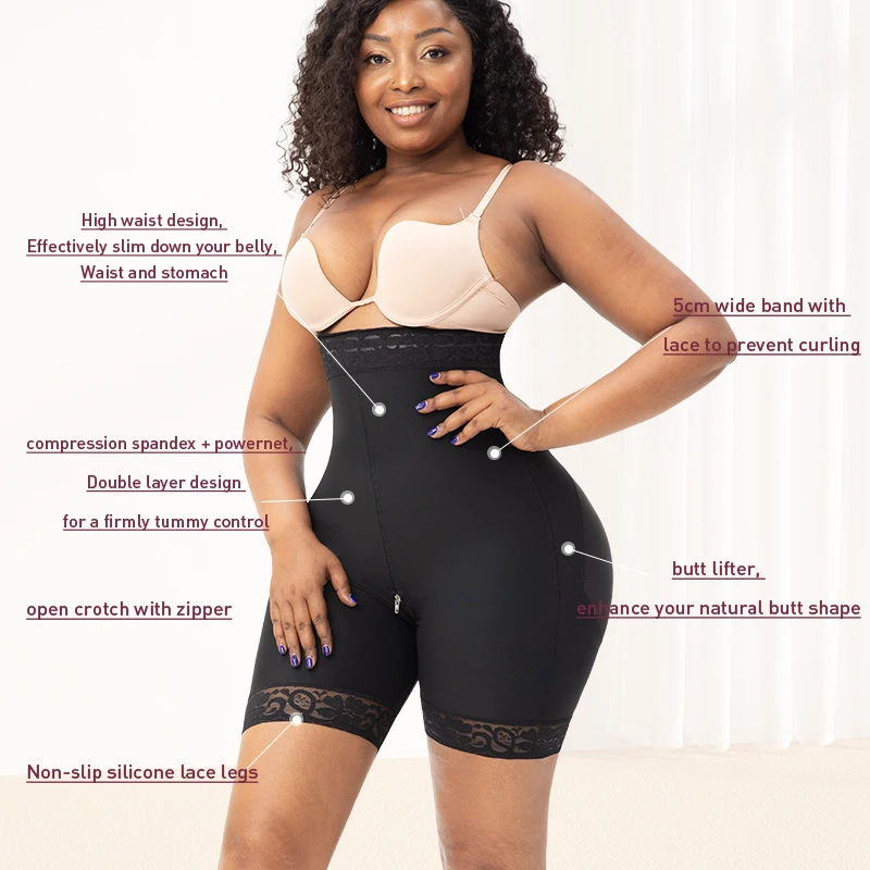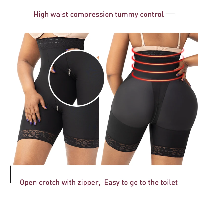 Side Zipper Butt Lift Faja Panties Short High Waist Compression Tummy Control Body Shaper Plus Size Shapewear