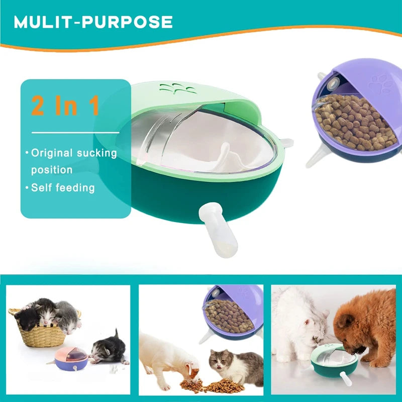Silicone Puppy Kitten Feeder Nursing 180ml Milk Bowl With 4 Nipple Bionic Self Feeding Device for Baby Pet Prevent Milk Choking