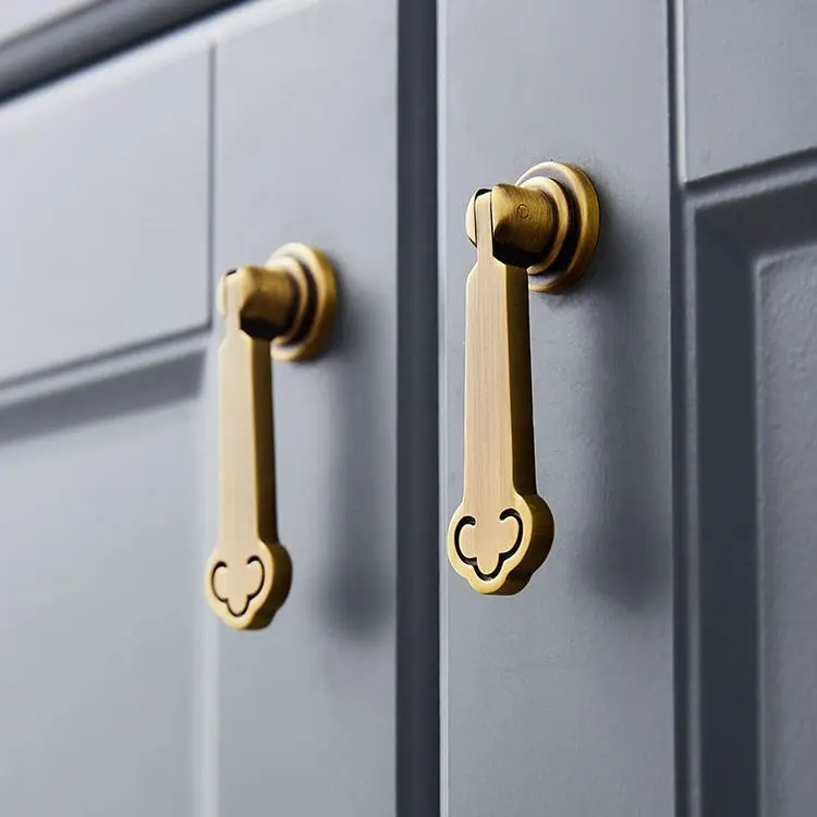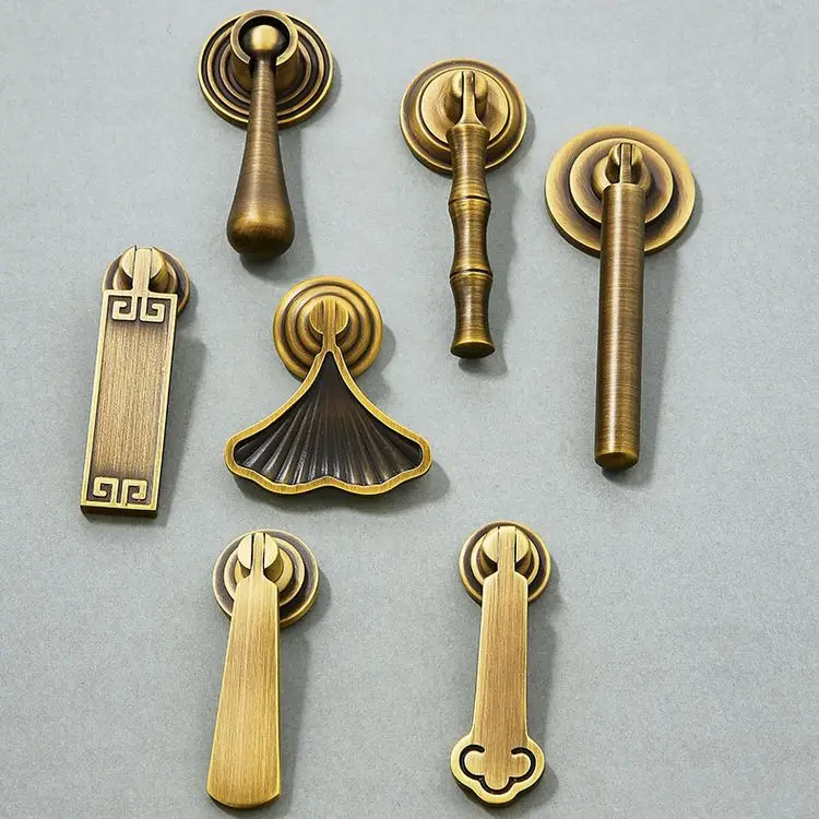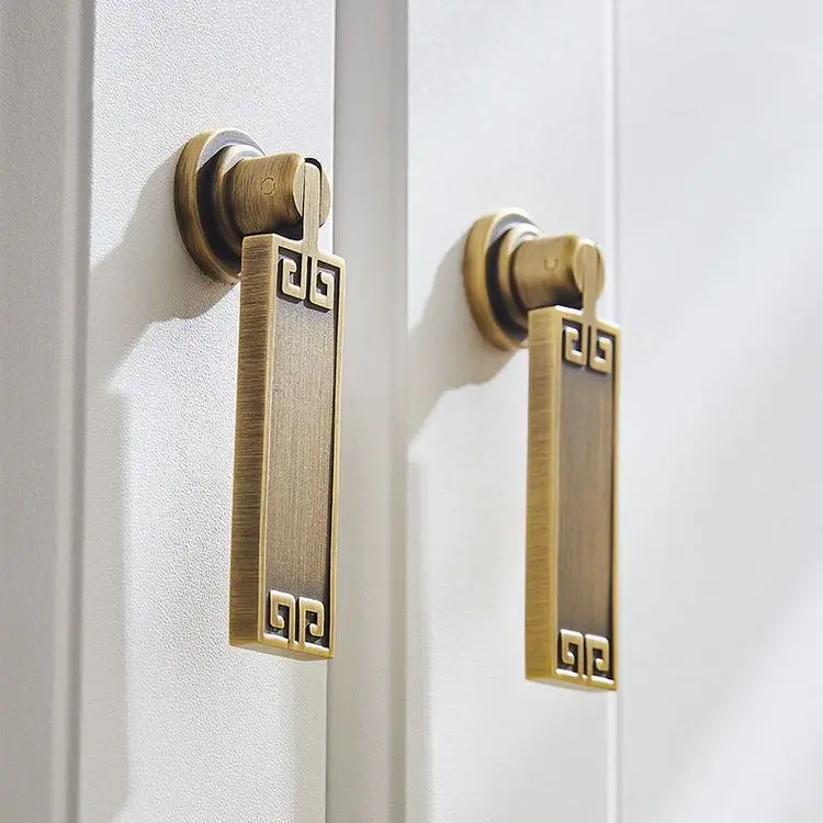 Single Hole Bronze Antique Cabinet Door Pendant Handle Knob Brass Kitchen Cabinet Drawer Knob Pulls