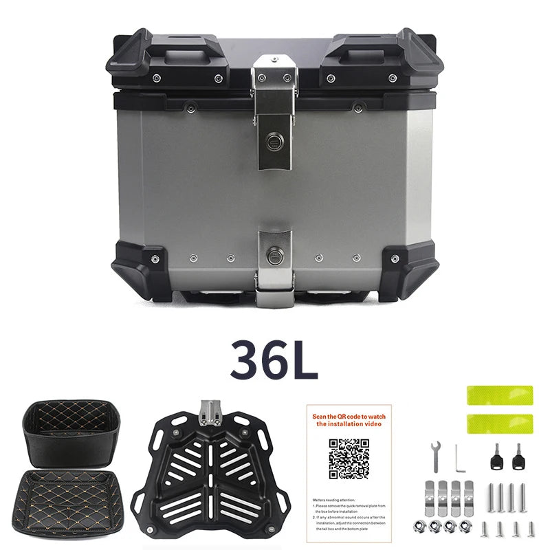 SLKE Factory 36L Aluminum Top Case Motorbike Sliver Black Aluminum Rear Tail Box Alloy Top Box Motorcycle Storage Luggage Box