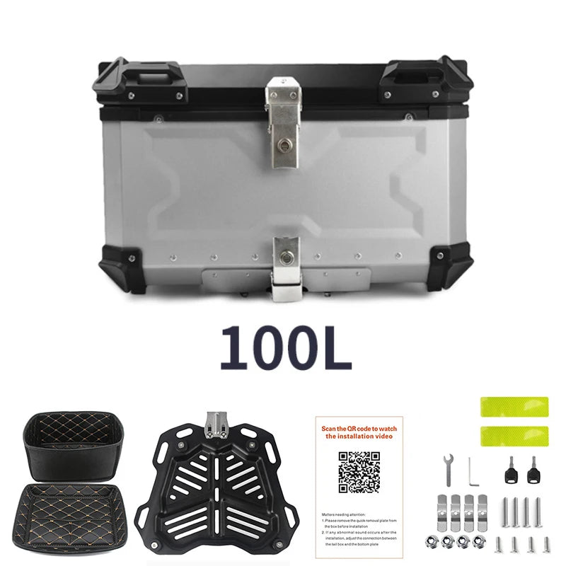 SLKE New design 100L Motorcycle Tail Boxes Aluminum Top Case For Other Motorcycle Safe Anti-theft Lock Motorcycle Rear Box
