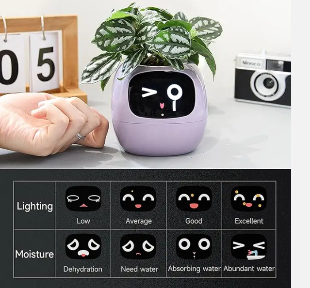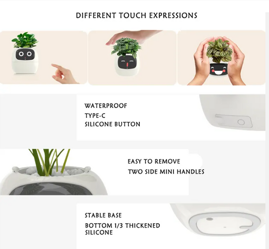 Smart Flowerpots,Smart Pet Planter,Ai Planter,Intelligent Flowerpots,Multiple Expressions,7 Smart Sensors, And Ai Chips Make Raising Plants Easy And Fun For Living Room