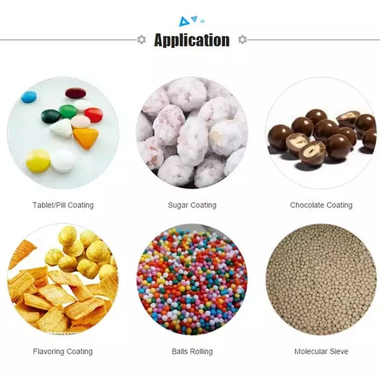 This machine is mainly suitable for the production of pill and sugar coating in the pharmaceutical industry, and also for the rolling, mixing and polishing of spherical or granular materials in the food, light industry and chemical industry.For example: chocolate polishing, covering peanuts, sugar, seasoning, manufacturing tang yuan,Tapioca Pearls, rolling desiccant, production of chemical filler, aluminum hydroxide ball, aluminum oxide ball, porcelain ball molecular sieve, catalyst, etc.