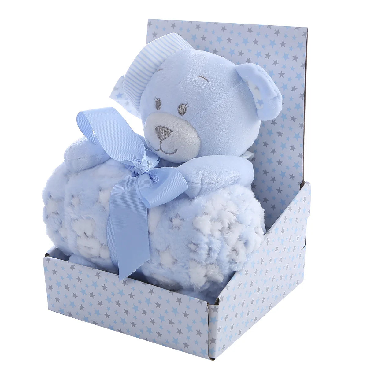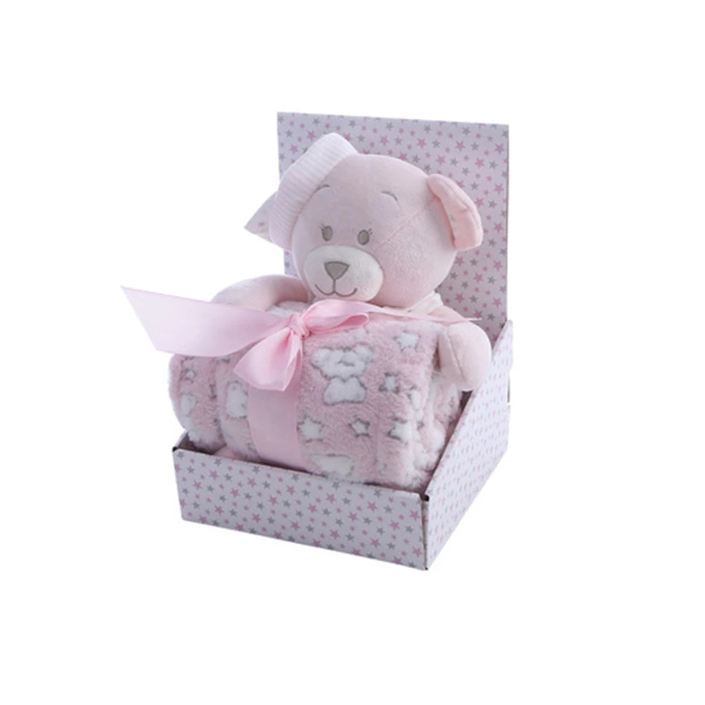 Soft Fleece Swaddle Blanket with Bear Gift Box New Born Baby Gift Set Baby Toy Blanket