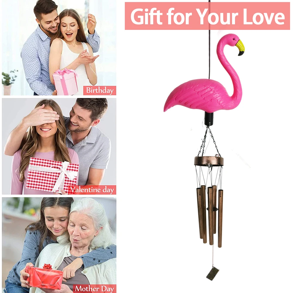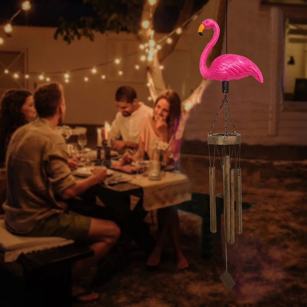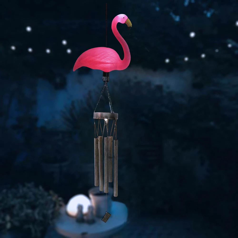 SOL8182 Solar Flamingo Shape Music Wind Chime, Solar Light Metal Wind Chimes, Sympathy Memorial Wind Chimes for Garden Landscape