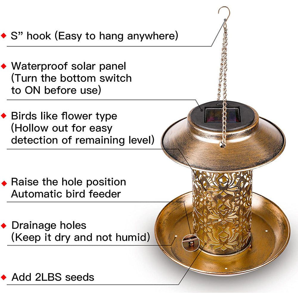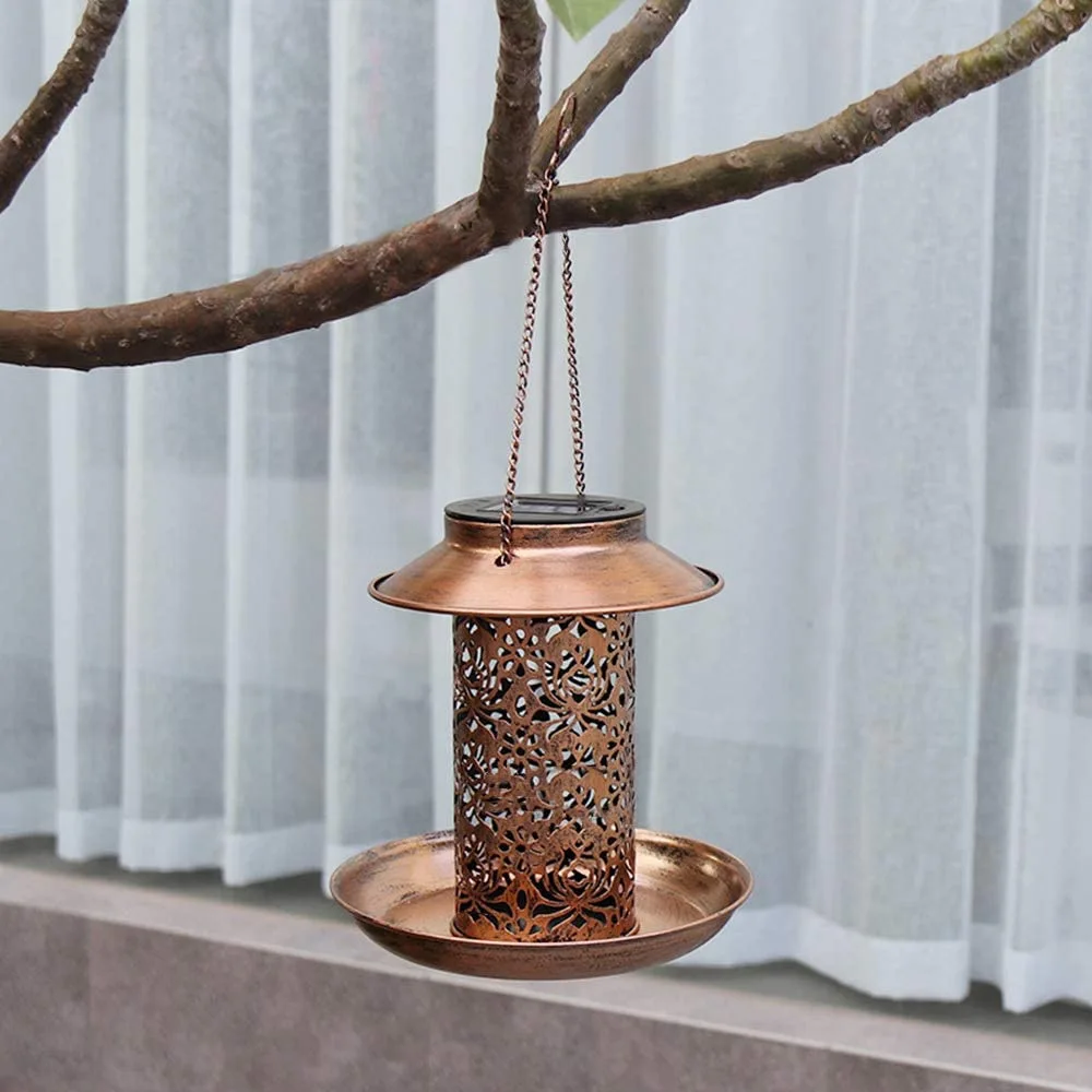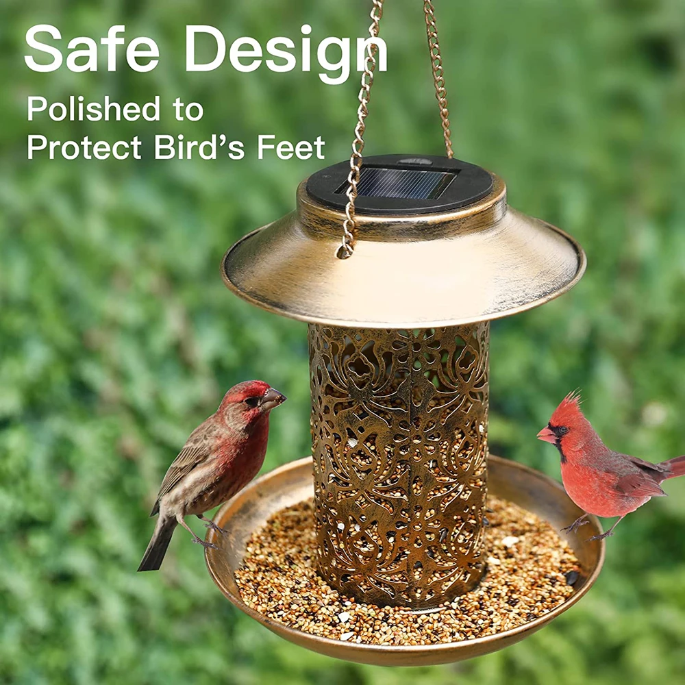 Solar Bird Feeder For Outdoors Hanging Metal Wild Bird Feeder For Cardinals Solar Garden Lantern As Gift Ideas For Bird Lovers