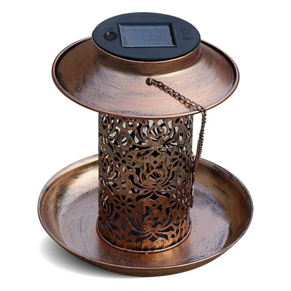 It is not only a bird feeder, but also a Solar garden lantern . The hollow-out design can make the remaining level of seeds easier to observe. A good choice for present.