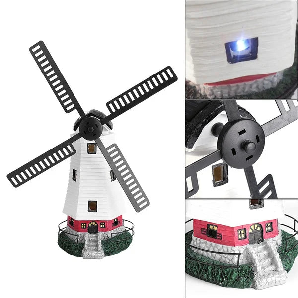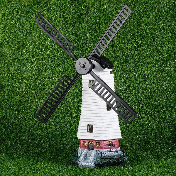 Solar Windmill Light Solar Rechargeable LED Lamp Garden Feature Outdoor Decor Polyresin solar powered windmill garden ornament