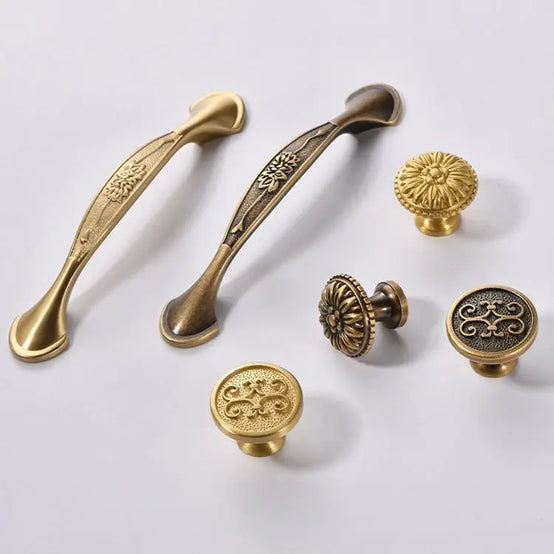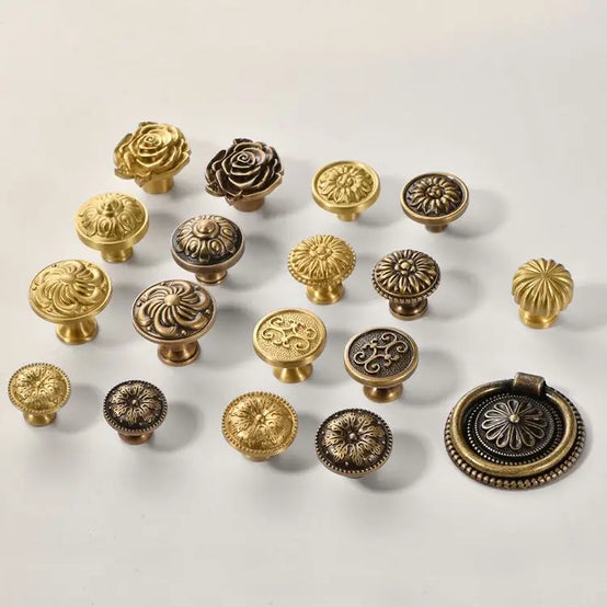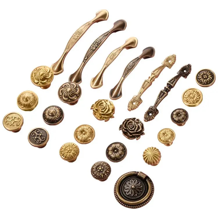 Solid Brass Luxury Handle Knob Antique Bronze Gold Drawer Wardrobe Door Cabinet Single Hole Knob Pull