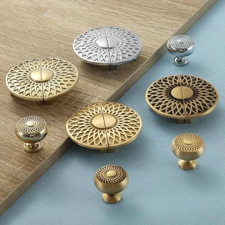 Solid Brass Sunflower Cabinet Handle Pulls Gold Chrome Drawer Single Hole Brass Door Creative Sun Flower Brass Handle Knob