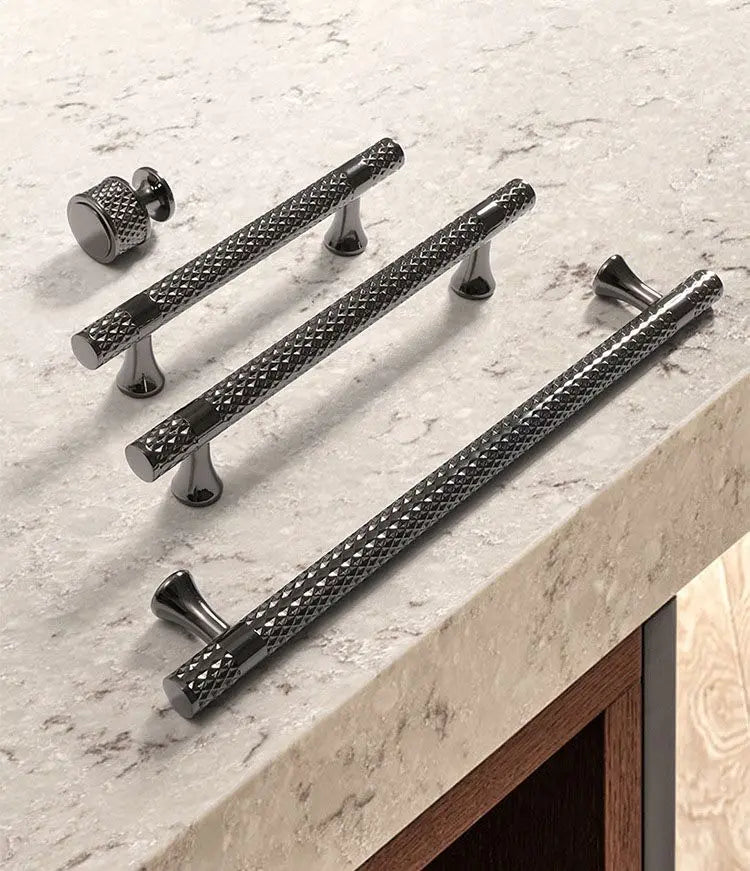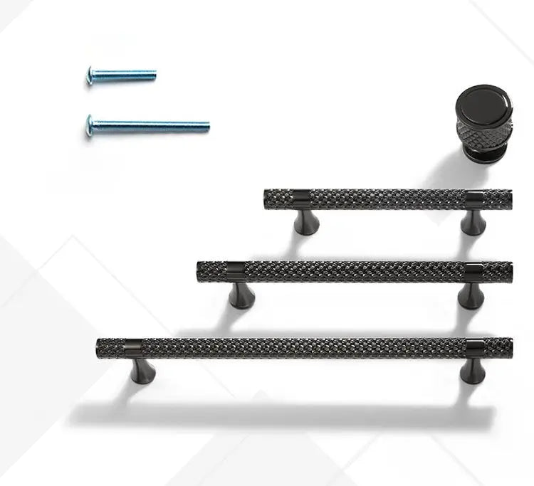 Solid Zinc Alloy Luxury Gold Black Textured Pull Handle Wardrobe Drawer Cabinet Handle Knob