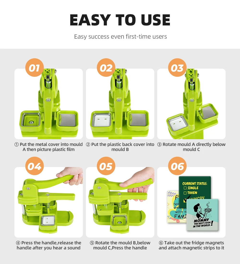 Square 50mm Badge Maker Fridge Magnet Button Custom Pins Metal Logo Badges Making Machine
