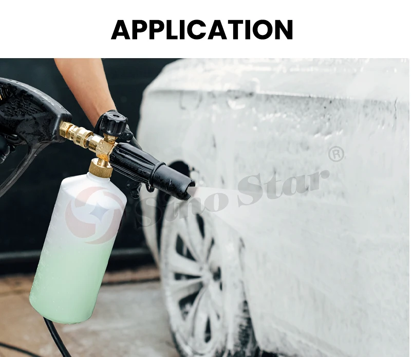 1. The foam sprayer is suitable to clean various types of motor vehicles, engineering vehicles, engineering machinery and agricultural machinery products. It is the most ideal tool for cleaning family car and small vehicle.