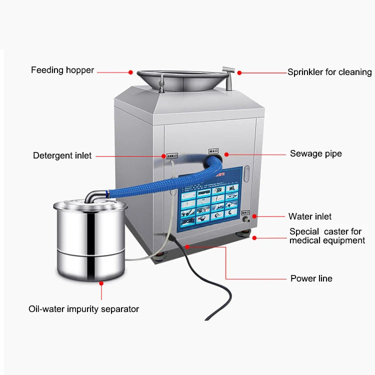 The commercial kitchen waste machine is used for medium and large fast food,hot pot restaurant,factory dining room,fruit juice shop, the hotel kitchen,the ship restaurant etc.It is made of all stainless steel,so it is very durable.