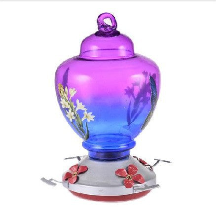 Stained Glass Humming Bird Water Feeder with Anti Ant Hook