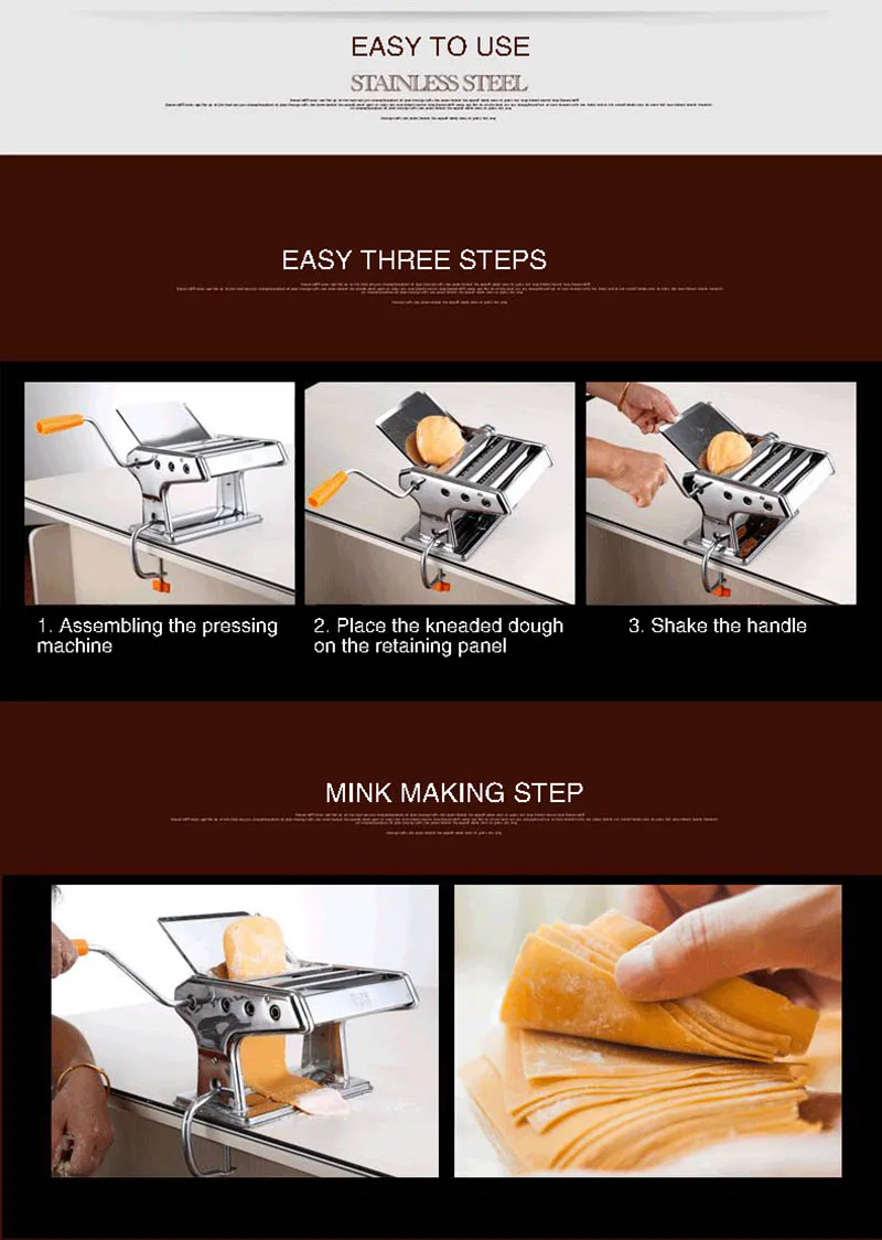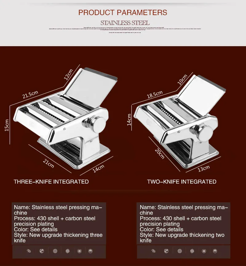 Stainless Steel Manual Cutting Adjustable Thickness Dough Fresh Noodle Pasta Maker Machine Kitchen Tools