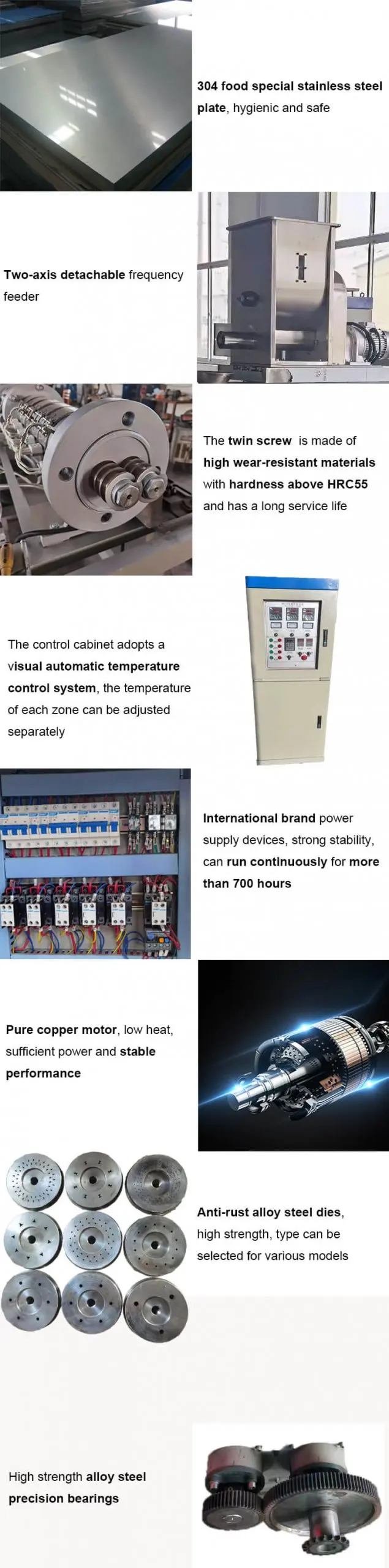 Twin screw extruders are ideal for compounding applications. They have the added benefit of performing feeding, mixing, and venting functions. The twin screw extruder is used for processing equipment that mainly expands products directly. The twin screw extruder machine can produce a wide variety of foods, including snack foods, breakfast cereals, sandwich puffed foods, instant rice noodles, bread slices, textured vegetable protein, candy, seasoning components, pet food, fish Shrimp feed, etc., and countless new types of food can bedeveloped.