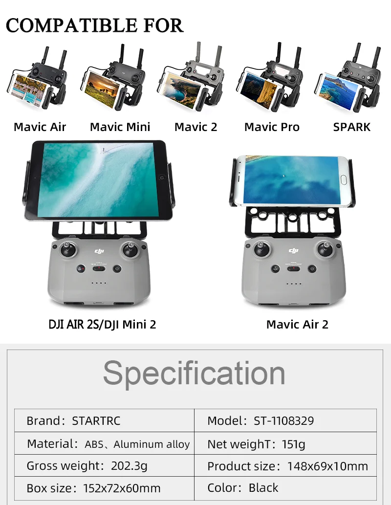 * 【Compatible】:This tablet stand can be compatible with DJI Air 2S/Mavic Mini 2/Mavic Mini/Mavic Air 2/Mavic 2 Pro/Zoom/Spark Remote Controller.