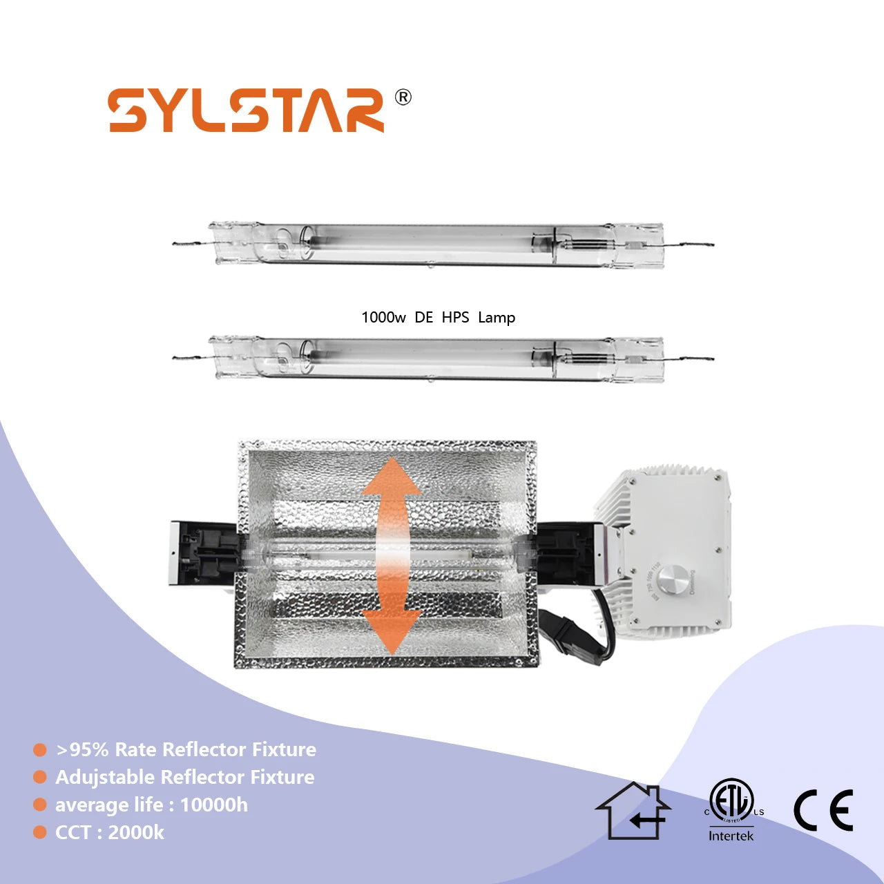 SYLSTAR ETL Dimmable 95% Reflectivity 1000W Hydroponic HID Double Ended HPS Plant Grow Lights DE Fixture