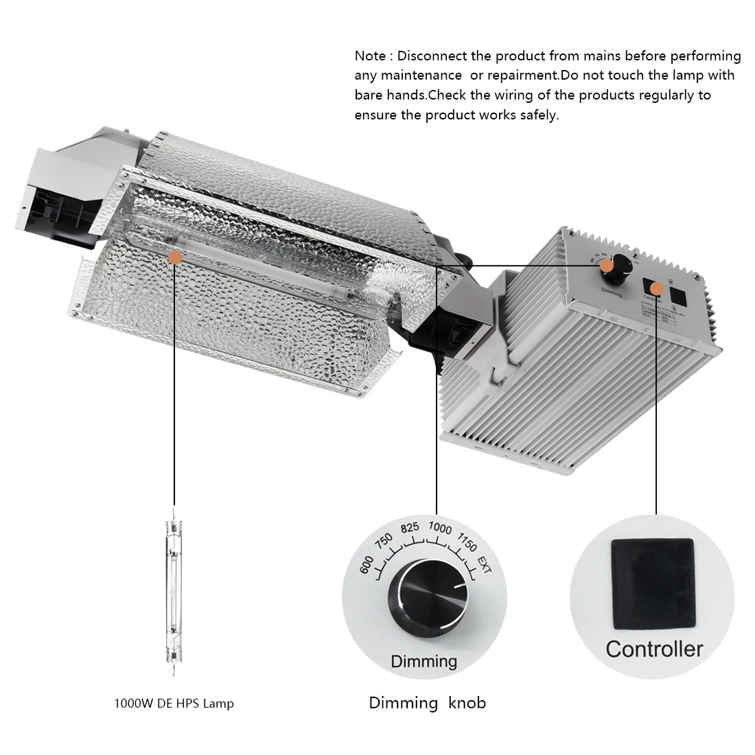• SUPER LUMEN LIGHT: Includes a Super HPS Double Ended 1000W HPS Bulb, high PAR 2100um+ output, providing 35% more available energy than Standard HPS Lamp bulb.