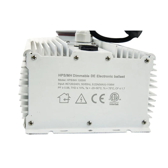 • HIGH FREQUENCY DIMMABLE BALLAST: High frequency digital dimmable ballast 120V-240V designed specifically for Double Ended Grow Lamps 1000W (HPS/MH), adjustable to 600/750/1000/1150W output.