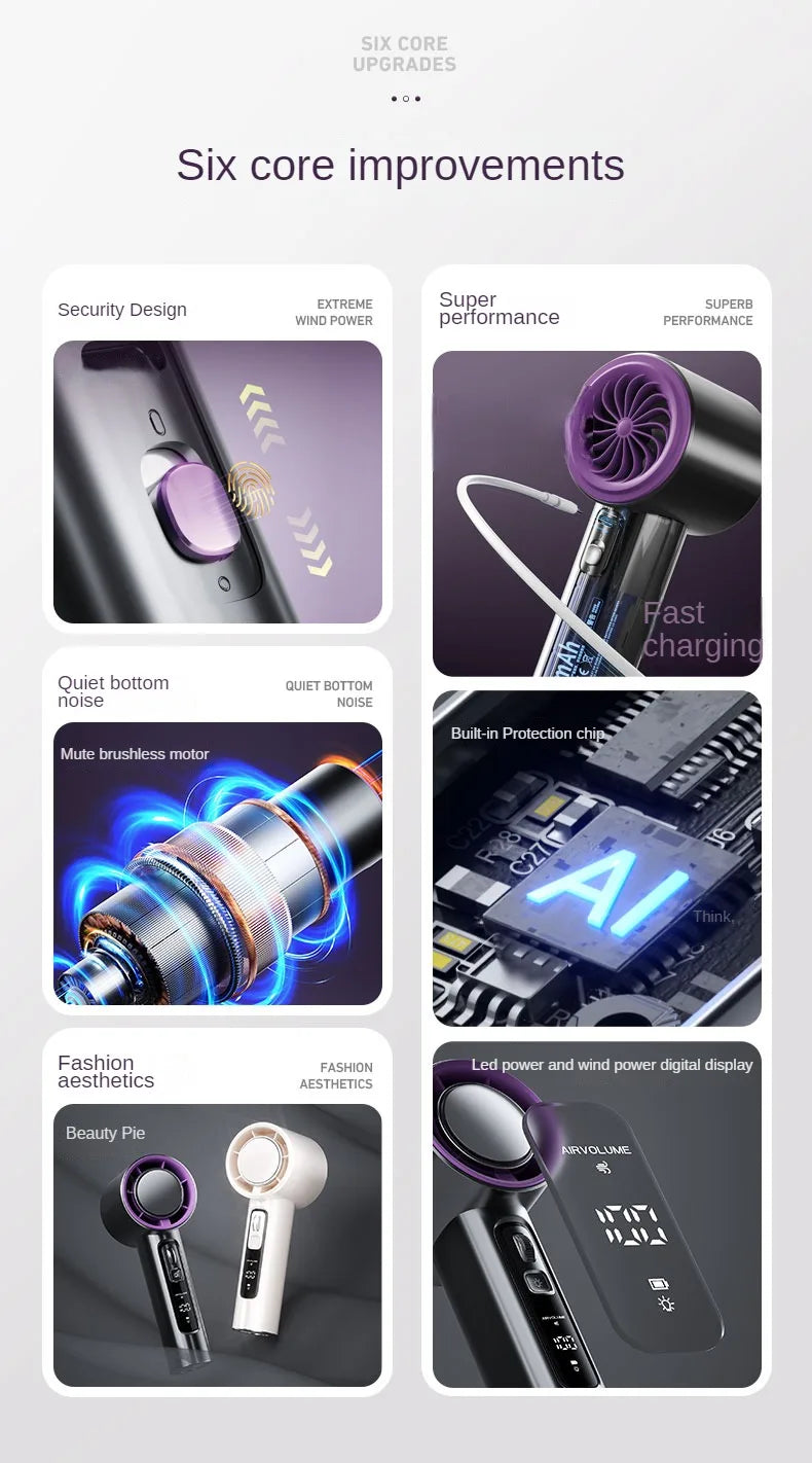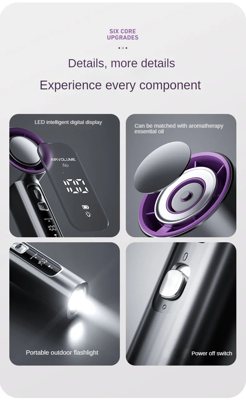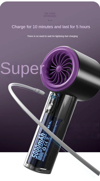 Strong light usb rechargeable electric handheld handy portable high speed fan 100 speed wind mini turbo scroll bladeless fan