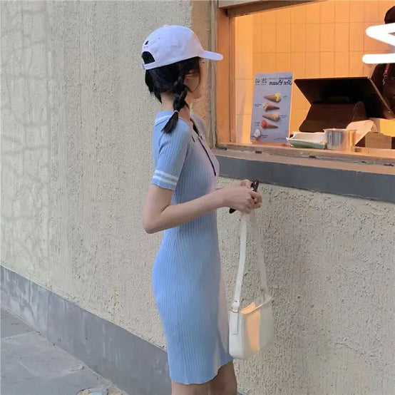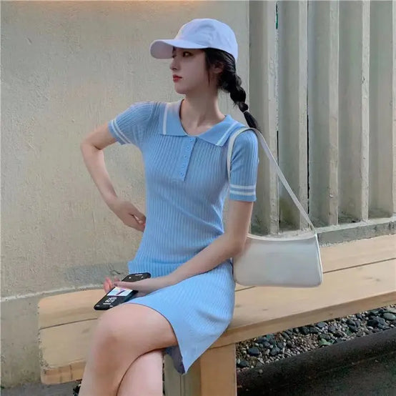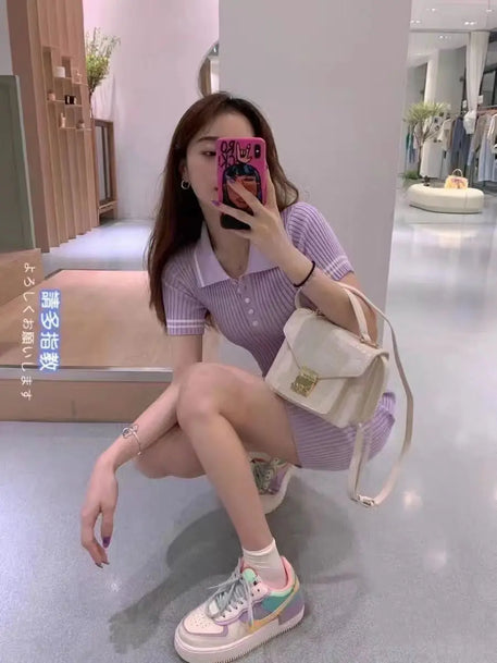 Summer 2023 Korean version of Xiao Xiang Feng Bing Si Knitted Skirt Slim, Salt and Sweet Short Dress Woman