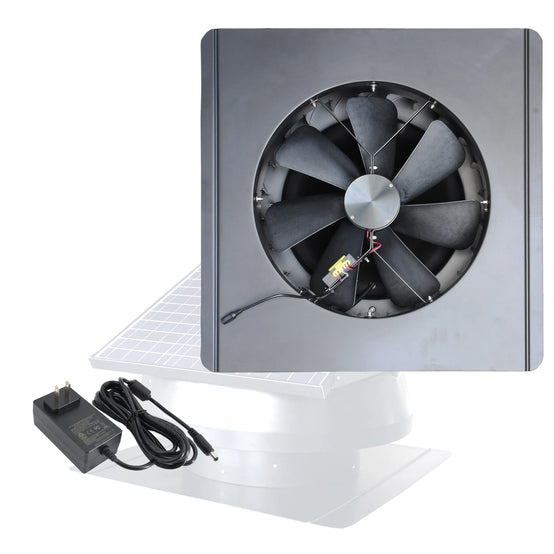 The fan motor engine is connected with solar panel & AC/DC adapter, 2 circuits, and it will run immediately once sunlight is available. Magically, as long as sunlight is sufficient there, AC/DC adapter will not supply power, which means AC/DC adapter will not consume grid electricity when solar panel is working!